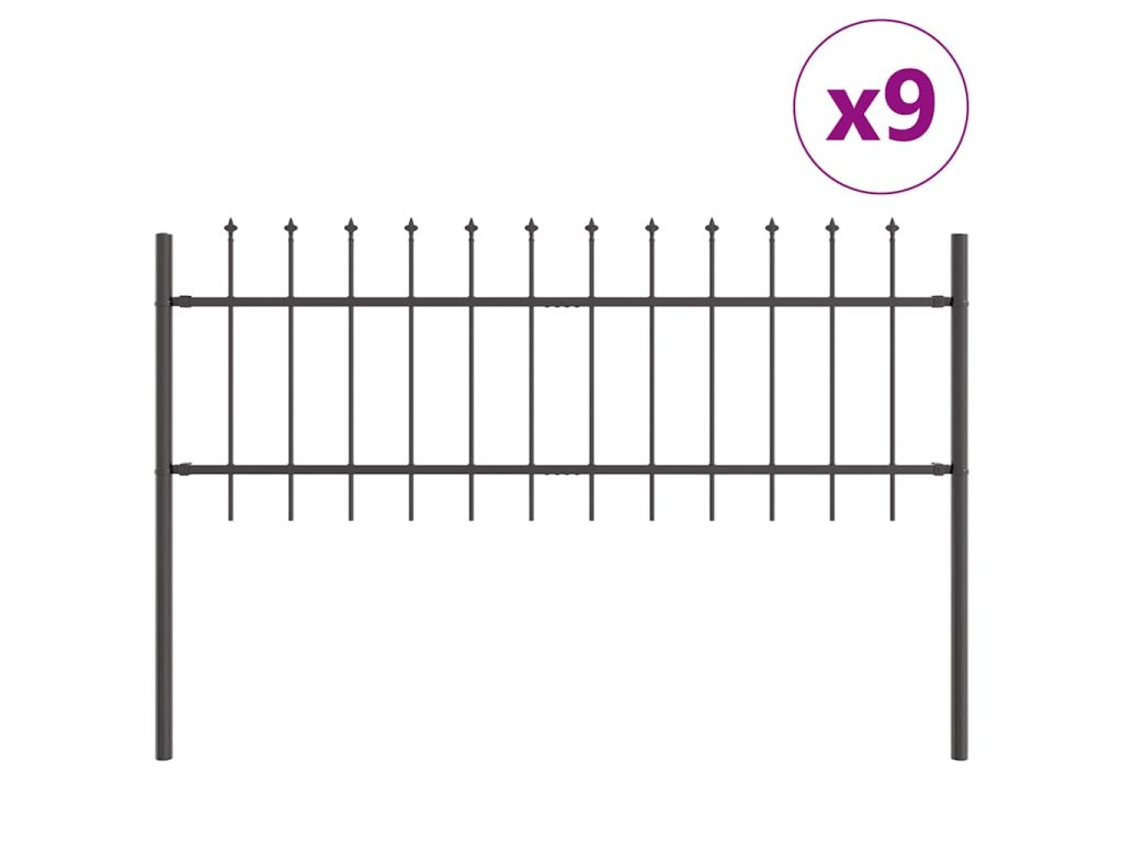 Zahradní plot 9 pcs Šedá 15,3 x 0,6 m Práškově lakovaná ocel 3334168
