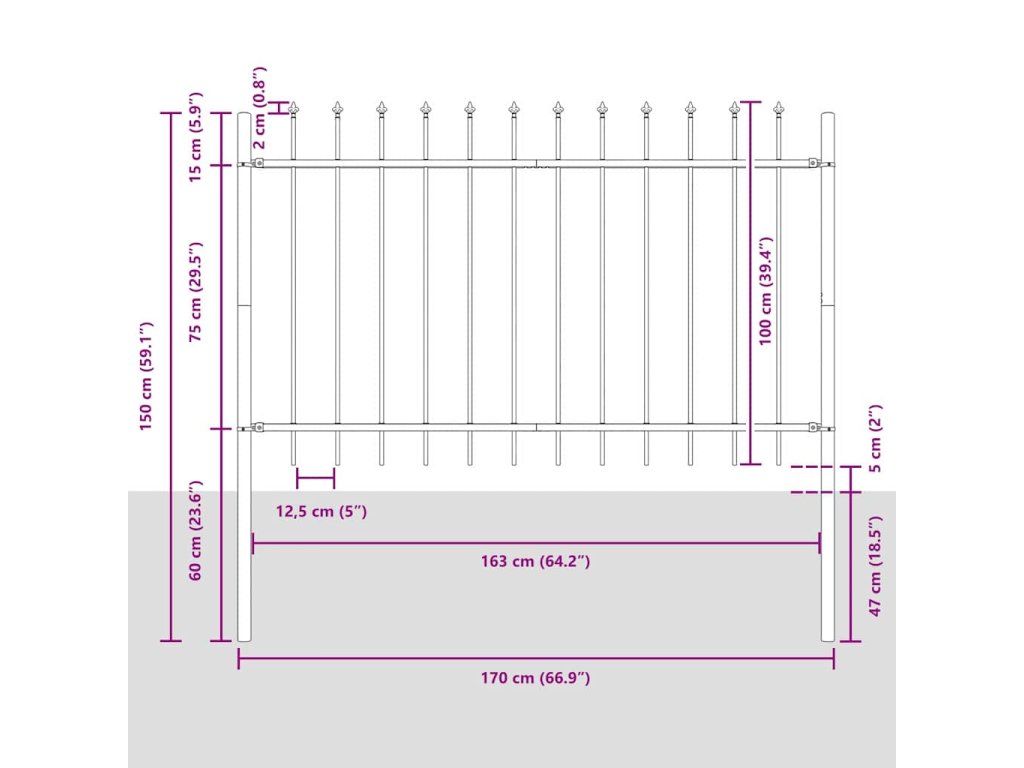 Tento panel zahradního plotu je jak praktický, tak hezký způsob, jak oddělit váš venkovní prostor. Vyrobený z práškově lakované oceli, je odolný pro venkovní použití a lehce ladí s různými zahradními uspořádáními. Díky obdélníkovému tvaru efektivně vymezuje hranice pozemku nebo vytváří uzavřené zahradní sekce. Vylepší vzhled vaší zahrady a zároveň nabízí potřebnou ochranu a soukromí uprostřed přírody.