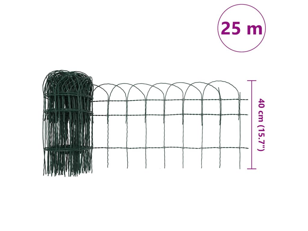 Tento stylový rozvinovací plot s délkou 25 m je určen k ochraně hranic vaší zahrady nebo lemů trávníku. Naše ohraničení je z kvalitního materiálu, který je odolný vůči klimatickým vlivům a vodě a plotu zajišťuje dlouhou životnost. Tento dekorativní plot pomáhá udržovat vaši zahradu čistou a uklizenou a také zdůrazňuje krásu vašich záhonů nebo lemů trávníku. Konstrukce z železných drátů účinně chrání záhony před zvířaty a rostliny na nich před nezvanými strávníky. Tento hraniční plot se dá snadno upevnit špičatými konci do země, což zvyšuje jeho bezpečnost a stabilitu.