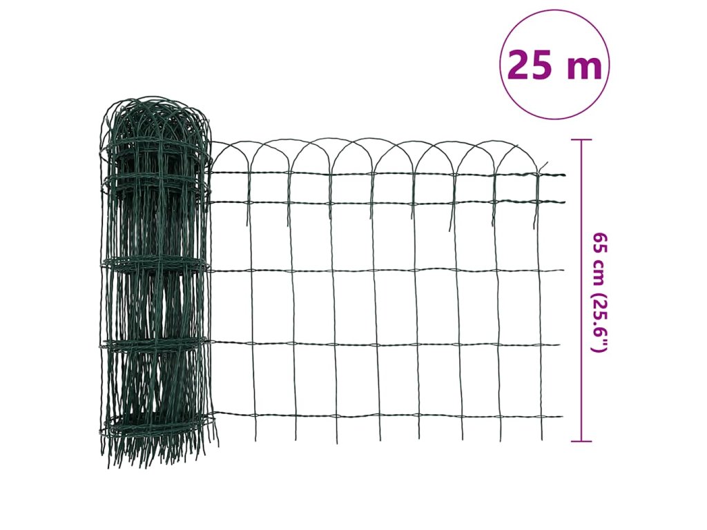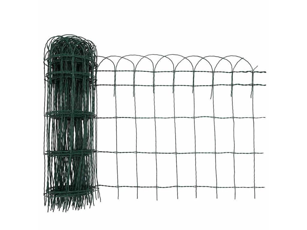 Tento stylový rozvinovací plot s délkou 25 m je určen k ochraně hranic vaší zahrady nebo lemů trávníku. Naše ohraničení je z kvalitního materiálu, který je odolný vůči klimatickým vlivům a vodě a plotu zajišťuje dlouhou životnost. Tento dekorativní plot pomáhá udržovat vaši zahradu čistou a uklizenou a také zdůrazňuje krásu vašich záhonů nebo lemů trávníku. Konstrukce z železných drátů účinně chrání záhony před zvířaty a rostliny na nich před nezvanými strávníky. Tento hraniční plot se dá snadno upevnit špičatými konci do země, což zvyšuje jeho bezpečnost a stabilitu.