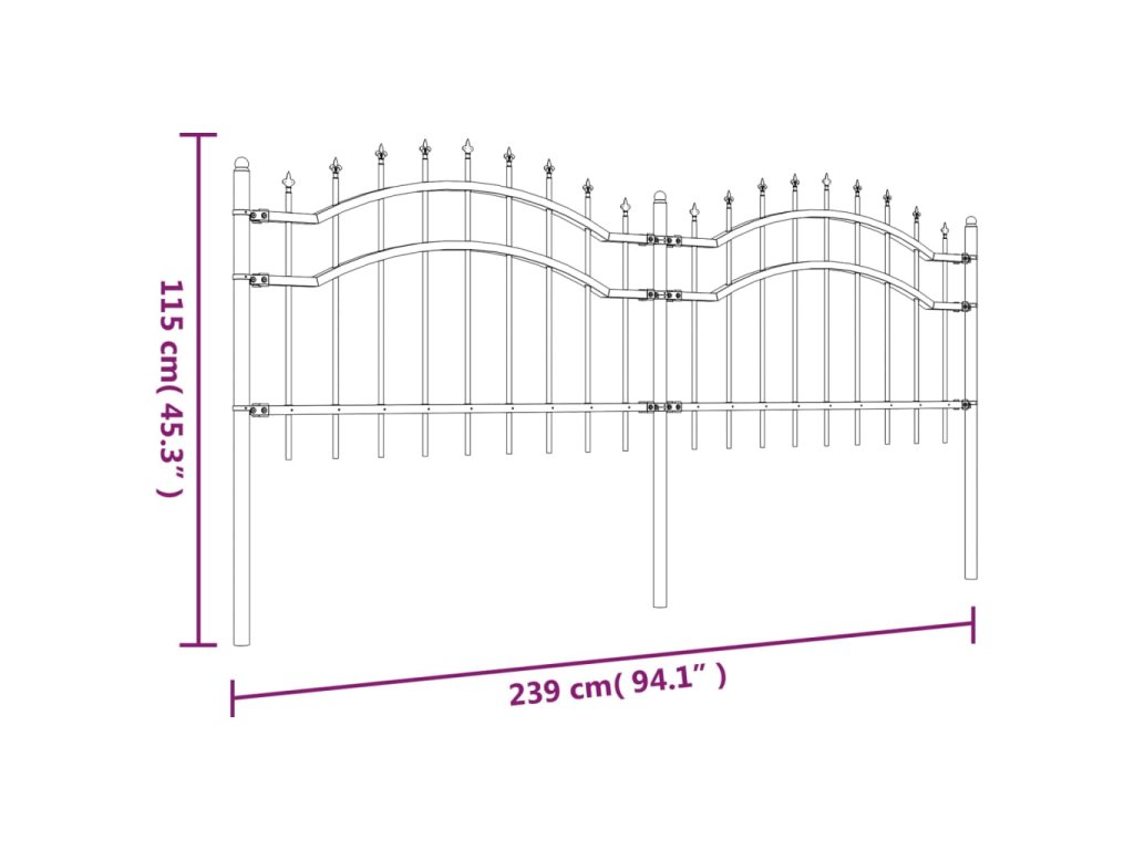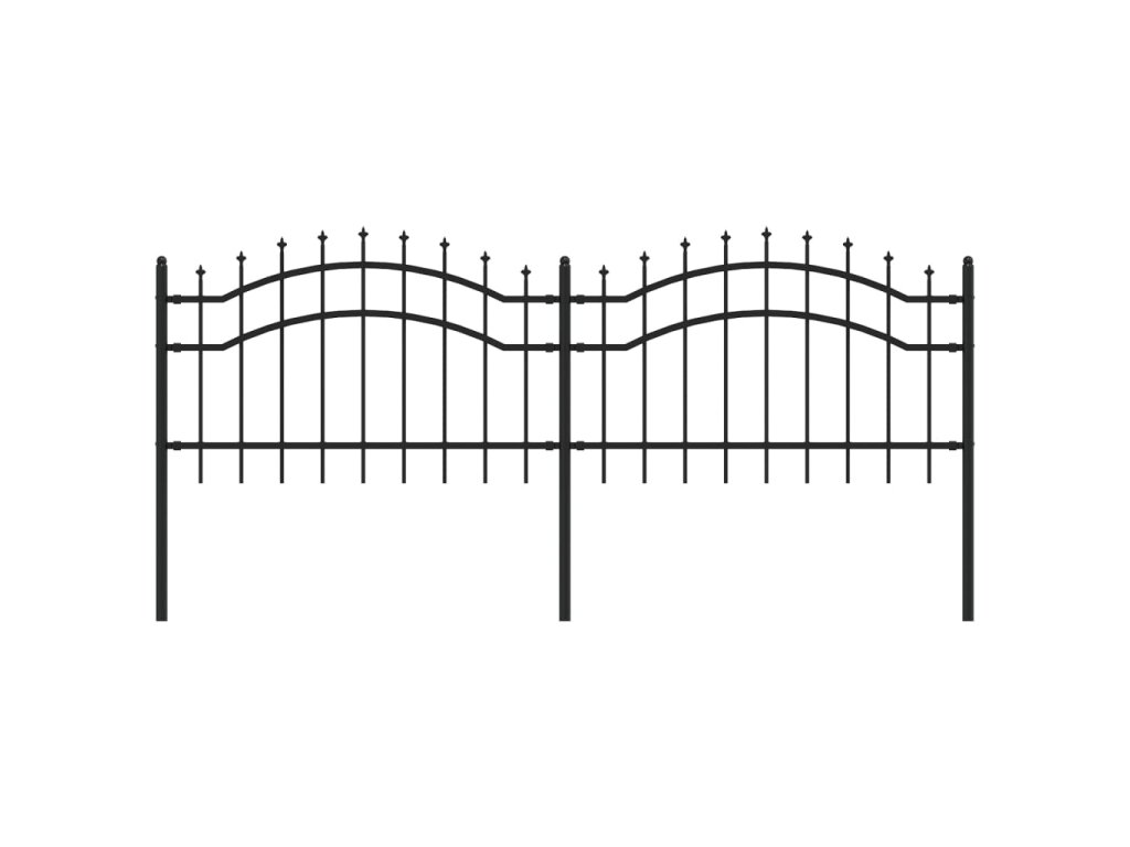 Zahradní plot s kopím nahoře černý 239 x 75 cm, práškově lakovaná ocel 151079