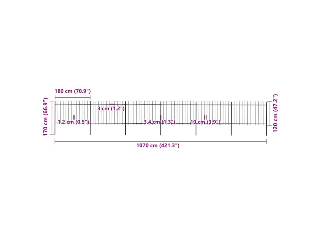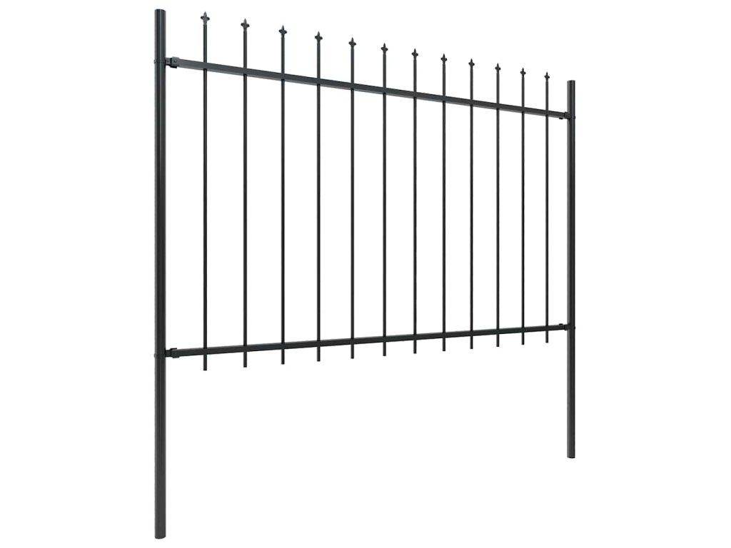 Zahradní plot s kopím nahoře ocelový 1070 x 120 cm černý 277625