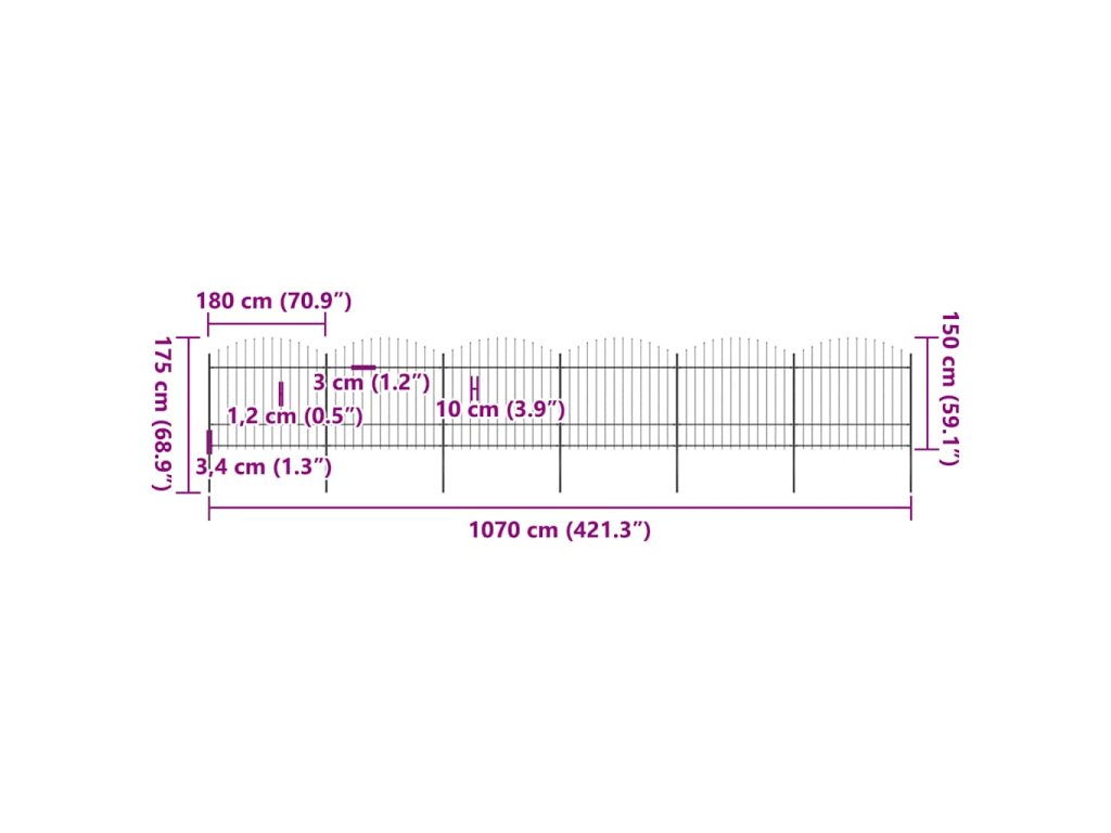 Zahradní plot s kopím nahoře ocelový 1070 x 175 cm černý 277744