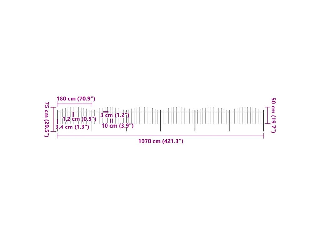 Zahradní plot s kopím nahoře ocelový 1070 x 75 cm černý 277708
