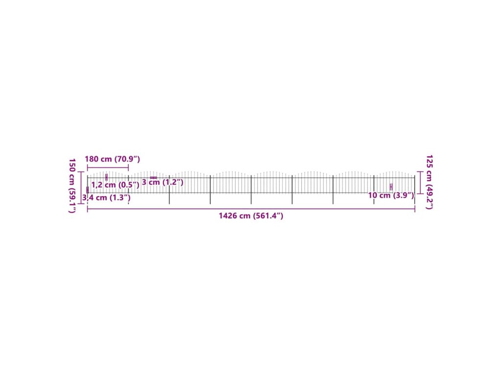 Zahradní plot s kopím nahoře ocelový 1426 x 150 cm černý 277737