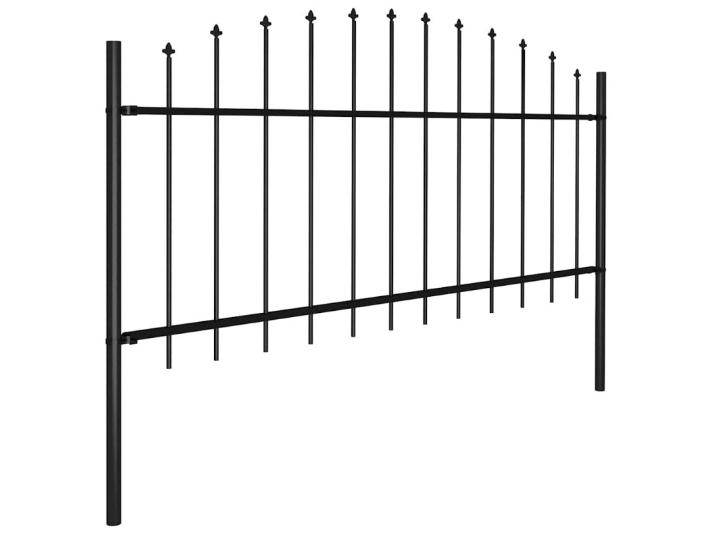 Zahradní plot s kopím nahoře ocelový 1426 x 75 cm černý 277710