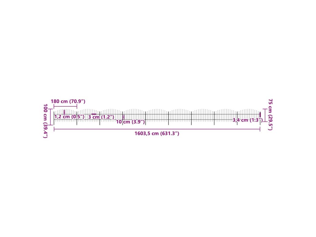 Zahradní plot s kopím nahoře ocelový 1603,5 x 100 cm černý 277720