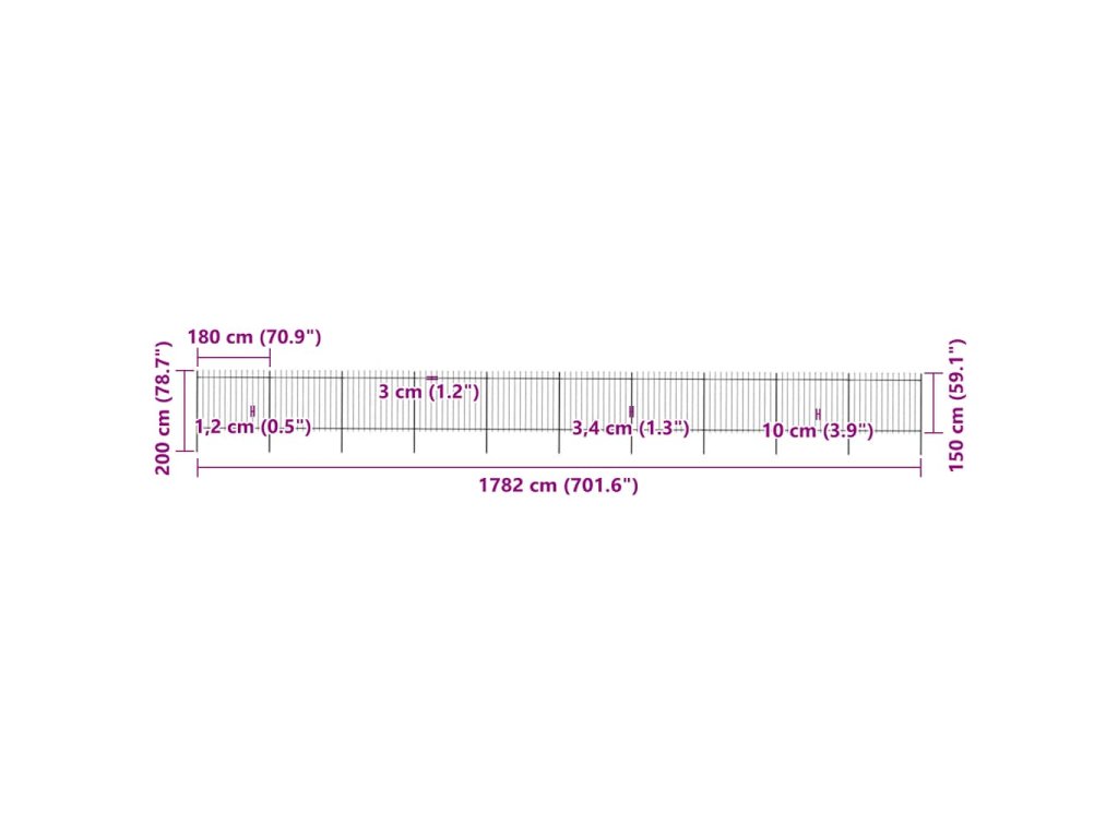 Zahradní plot s kopím nahoře ocelový 1781,5 x 150 cm černý 277638