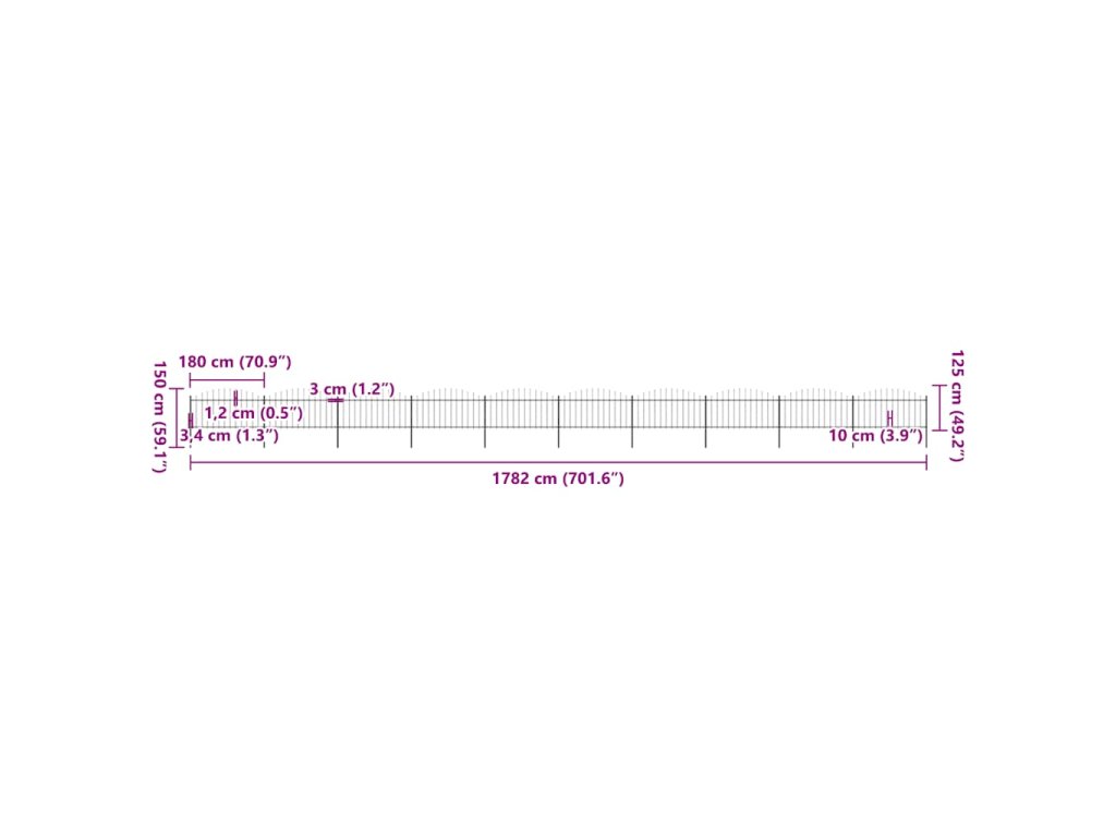 Zahradní plot s kopím nahoře ocelový 1781,5 x 150 cm černý 277739
