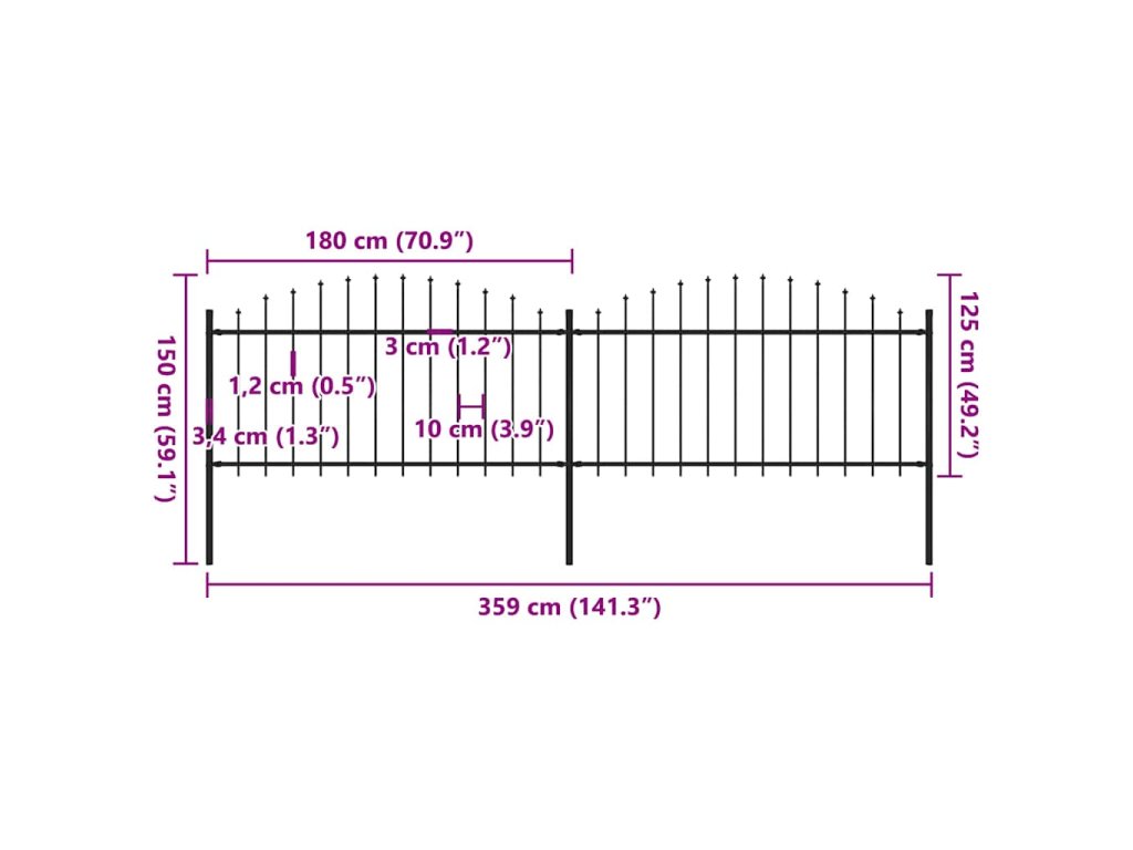 Zahradní plot s kopím nahoře ocelový 359 x 150 cm černý 277731