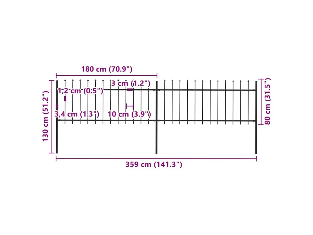 Zahradní plot s kopím nahoře ocelový 359 x 80 cm černý 277603