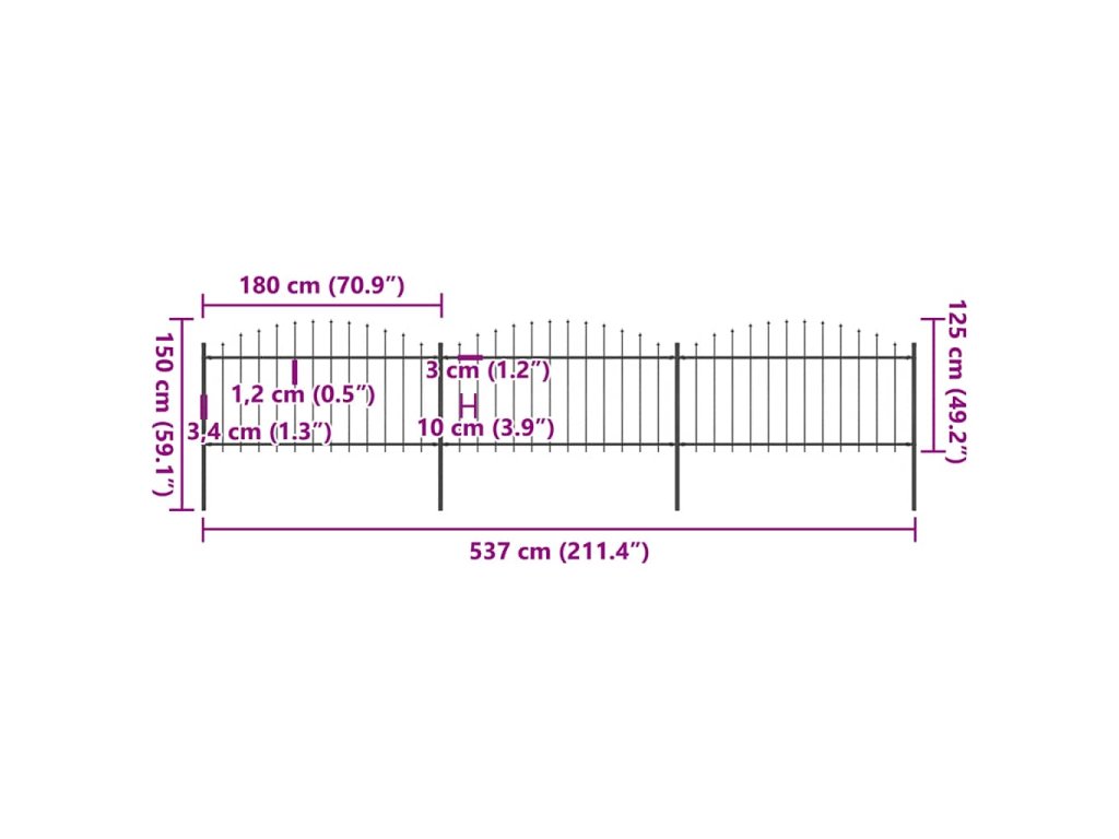 Zahradní plot s kopím nahoře ocelový 537 x 150 cm černý 277732