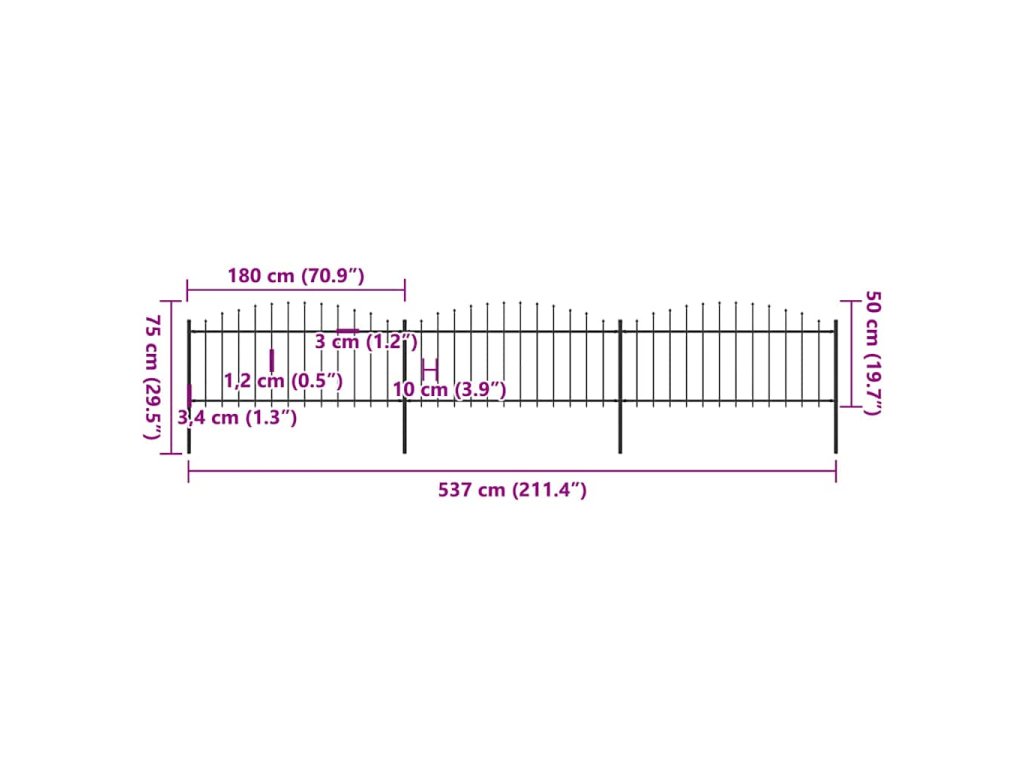 Zahradní plot s kopím nahoře ocelový 537 x 75 cm černý 277705