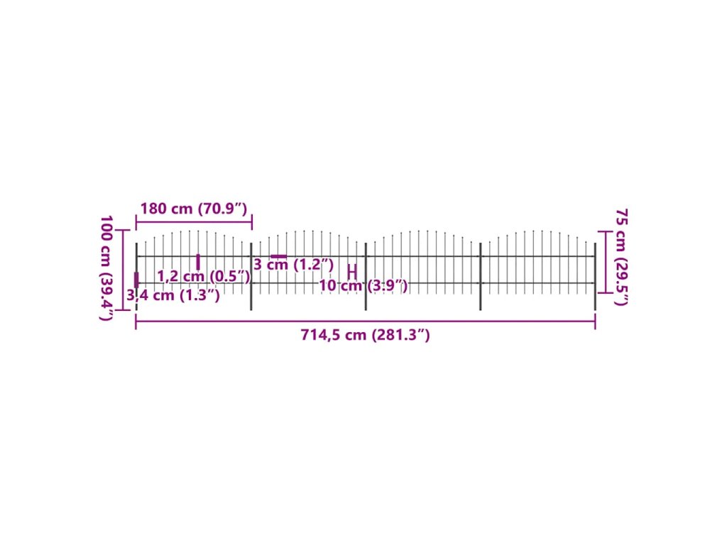 Zahradní plot s kopím nahoře ocelový 714,5 x 100 cm černý 277715