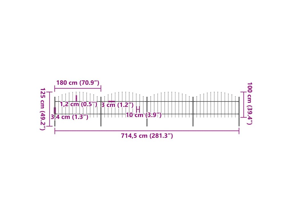 Zahradní plot s kopím nahoře ocelový 714,5 x 125 cm černý 277724