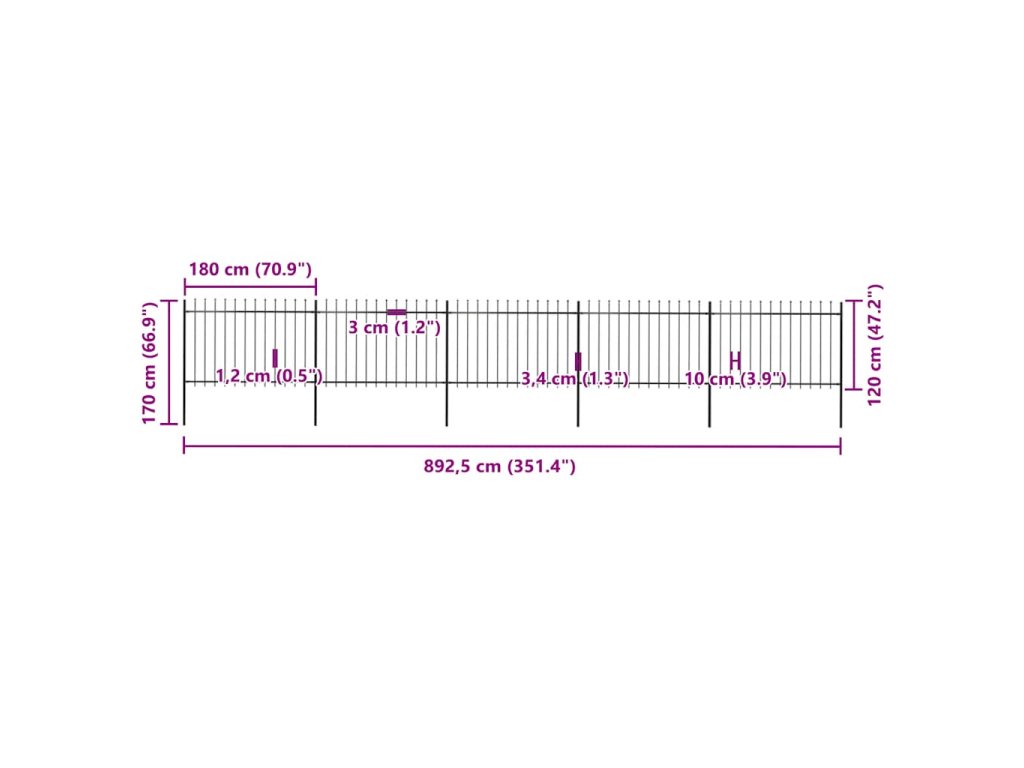 Zahradní plot s kopím nahoře ocelový 892,5 x 120 cm černý 277624