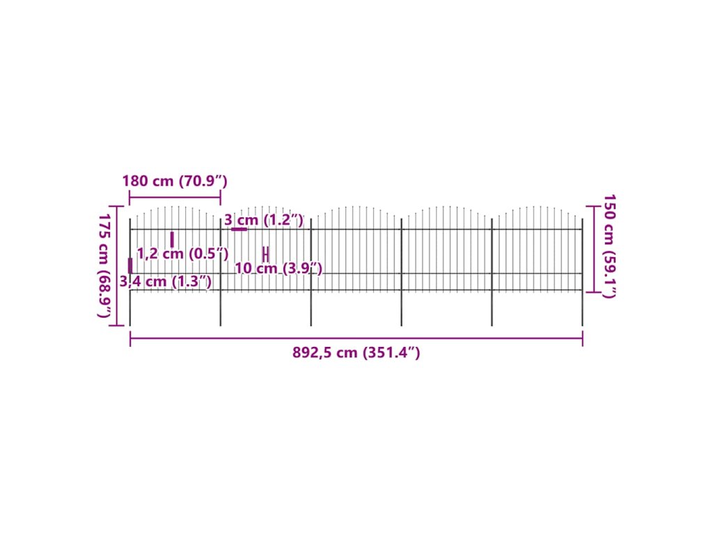 Zahradní plot s kopím nahoře ocelový 892,5 x 175 cm černý 277743