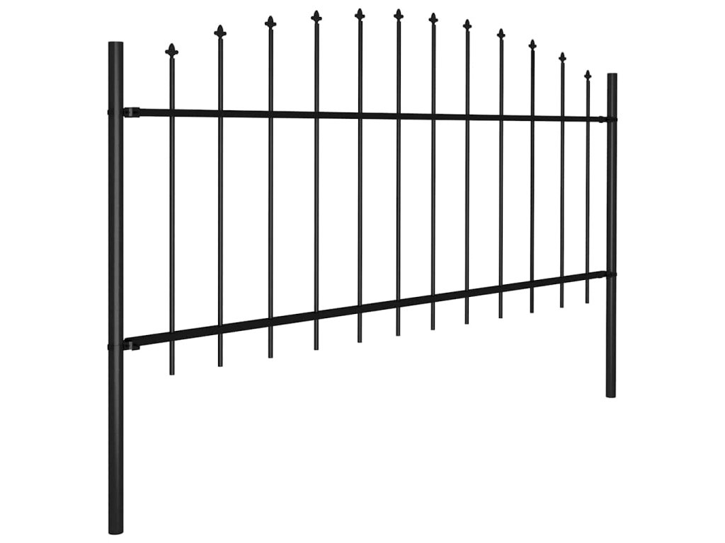 Zahradní plot s kopím nahoře ocelový 892,5 x 75 cm černý 277707