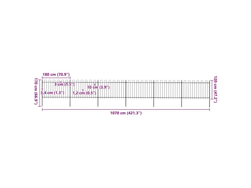 Zahradní plot s obloukem nahoře ocelový 1070 x 120 cm černý 277670