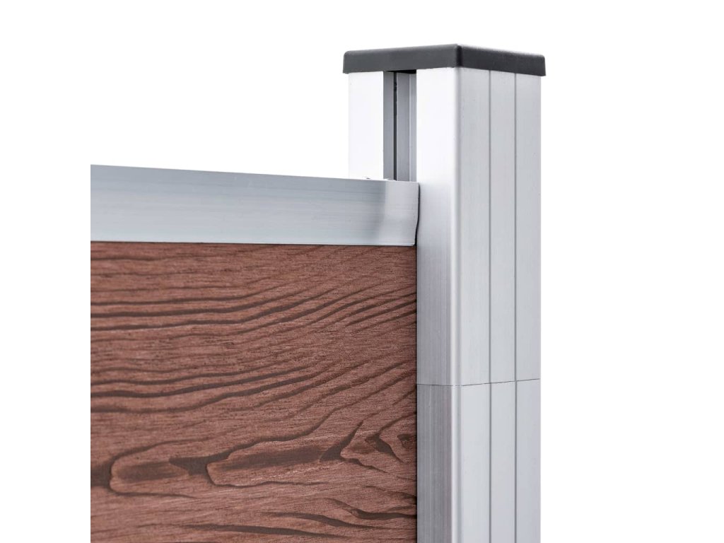 WPC plot má z jedné strany potisk dřevěné kresby a z druhé běžný potisk, takže si můžete vybrat, který design se vám líbí víc. Náš dřevoplastový panel nevyžaduje žádnou dodatečnou údržbu, jako je olejování nebo natírání. Je velmi odolný vůči hnilobě i rzi. Horní hliníkový profil vám umožní plotové desky pevně připojit jednu ke druhé, a zvýšit tak jejich pevnost a odolnost proti nárazu. Design modulárního systému usnadňuje instalaci plotových prken a dává vám možnost plot dle libosti rozšiřovat. Na každém sloupku se nachází tři drážky, takže můžete plot sestavovat různými způsoby, například v jedné rovině (180 stupňů), v pravém úhlu (90 stupňů) nebo do tvaru písmene T. Balení obsahuje 54 WPC desek, 7 sloupků a 6 hliníkových lišt.