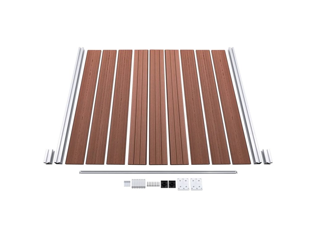 WPC plot má z jedné strany potisk dřevěné kresby a z druhé běžný potisk, takže si můžete vybrat, který design se vám líbí víc. Náš dřevoplastový panel nevyžaduje žádnou dodatečnou údržbu, jako je olejování nebo natírání. Je velmi odolný vůči hnilobě i rzi. Horní hliníkový profil vám umožní plotové desky pevně připojit jednu ke druhé, a zvýšit tak jejich pevnost a odolnost proti nárazu. Design modulárního systému usnadňuje instalaci plotových prken a dává vám možnost plot dle libosti rozšiřovat. Na každém sloupku se nachází tři drážky, takže můžete plot sestavovat různými způsoby, například v jedné rovině (180 stupňů), v pravém úhlu (90 stupňů) nebo do tvaru písmene T. Balení obsahuje 36 WPC desek, 5 sloupků a 4 hliníkové lišty.
