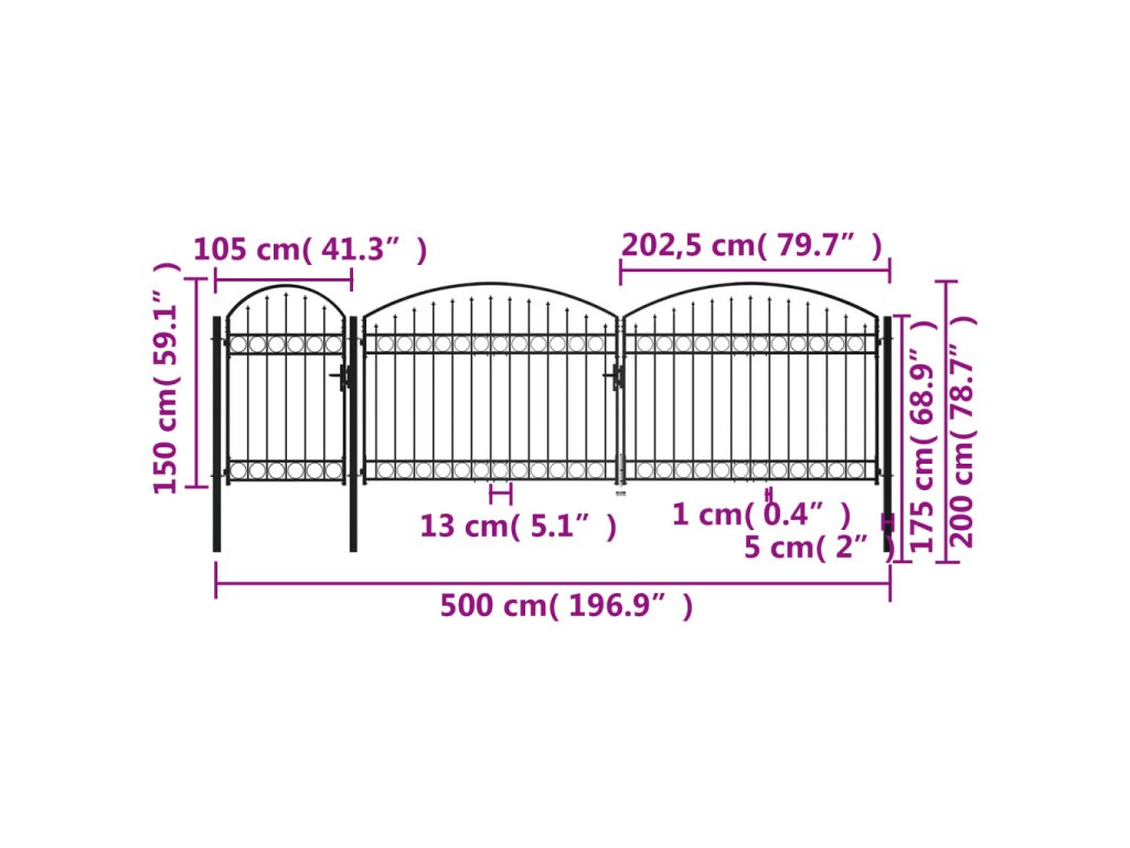 Zahradní plotová branka s obloukem ocelová 2 x 5 m černá 144372