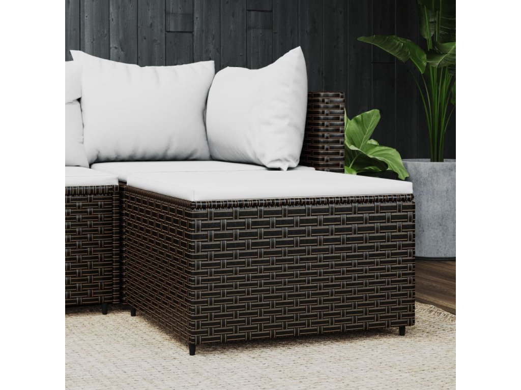 Zahradní podnožka s poduškou hnědá polyratan 319756