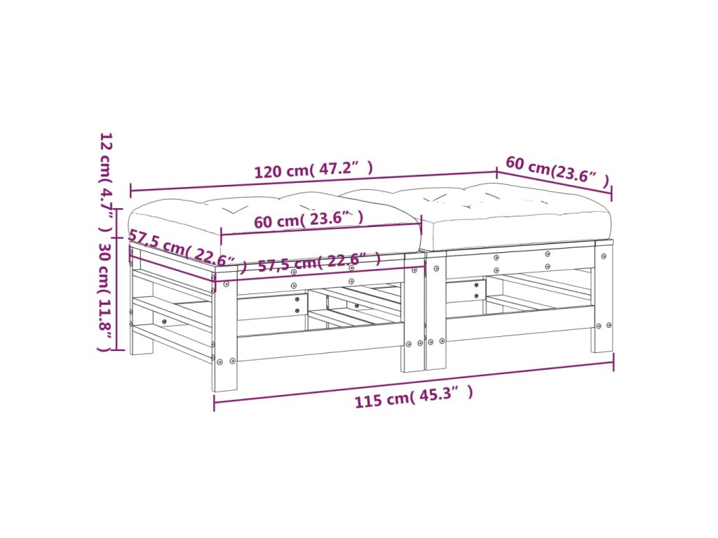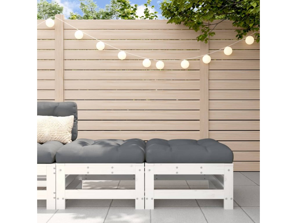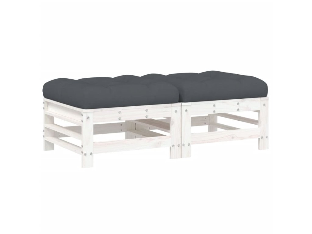 Zahradní podnožky s poduškami 2 ks bílé masivní borové dřevo 825696