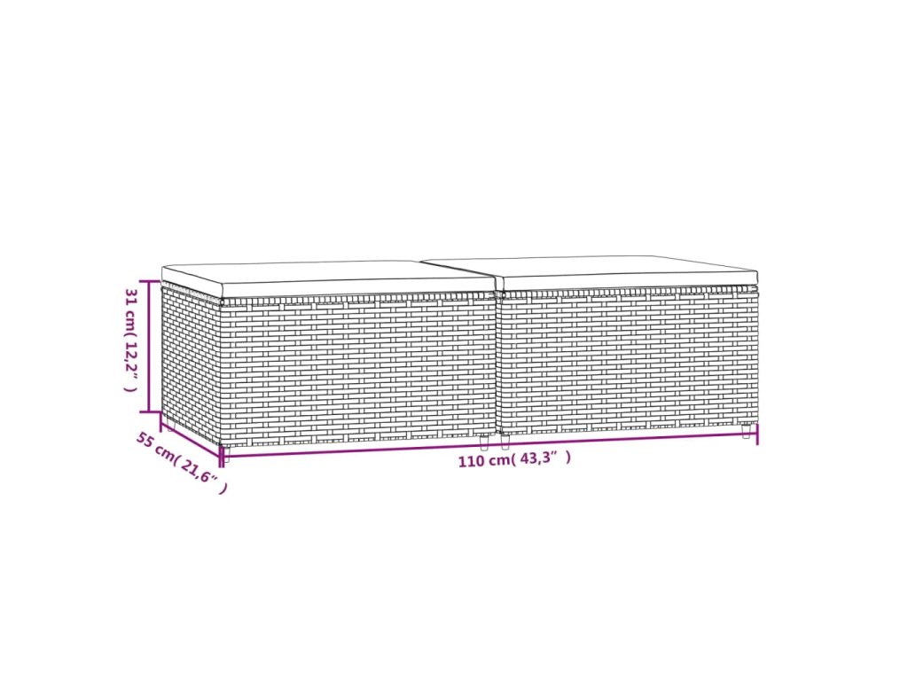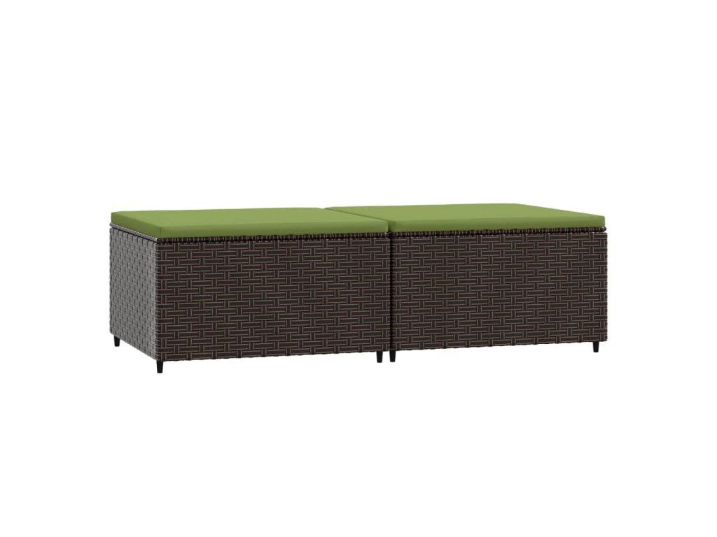 Zahradní podnožky s poduškami 2 ks hnědé polyratan 319837