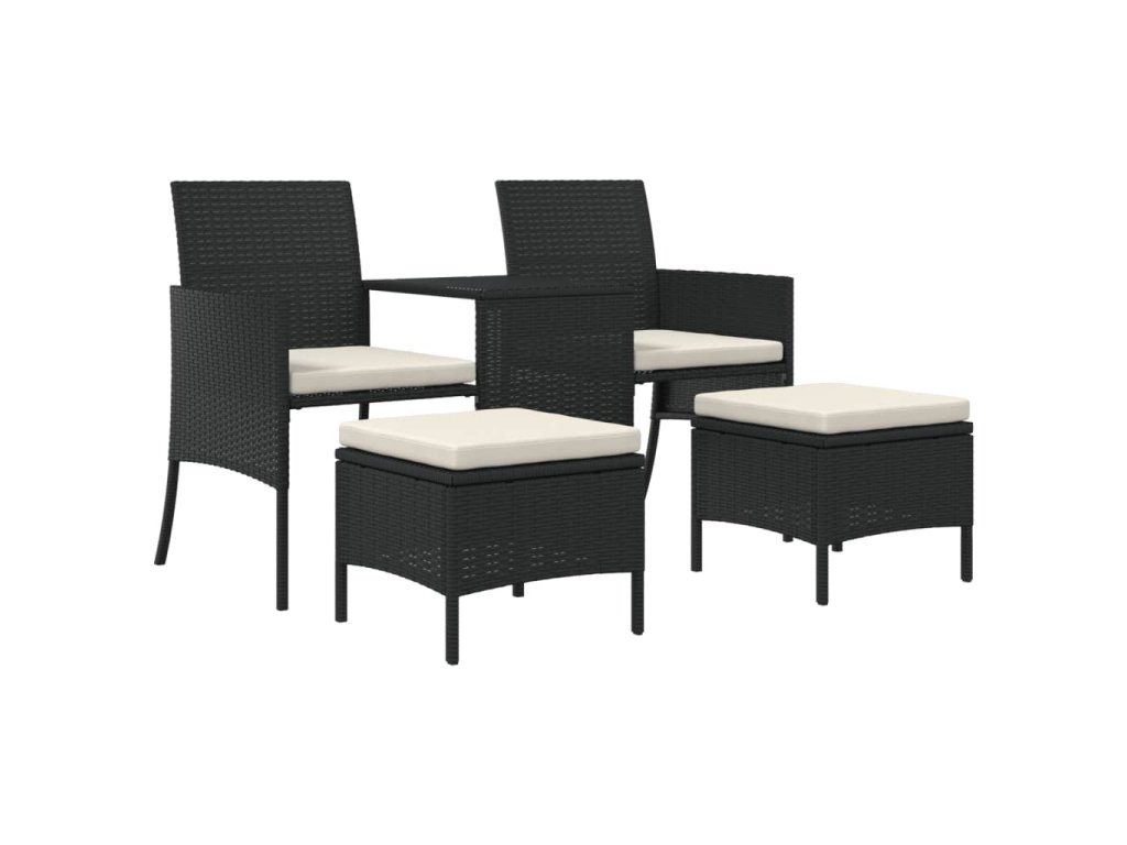 Zahradní pohovka 2místná se stolkem a taburety černá polyratan 317626