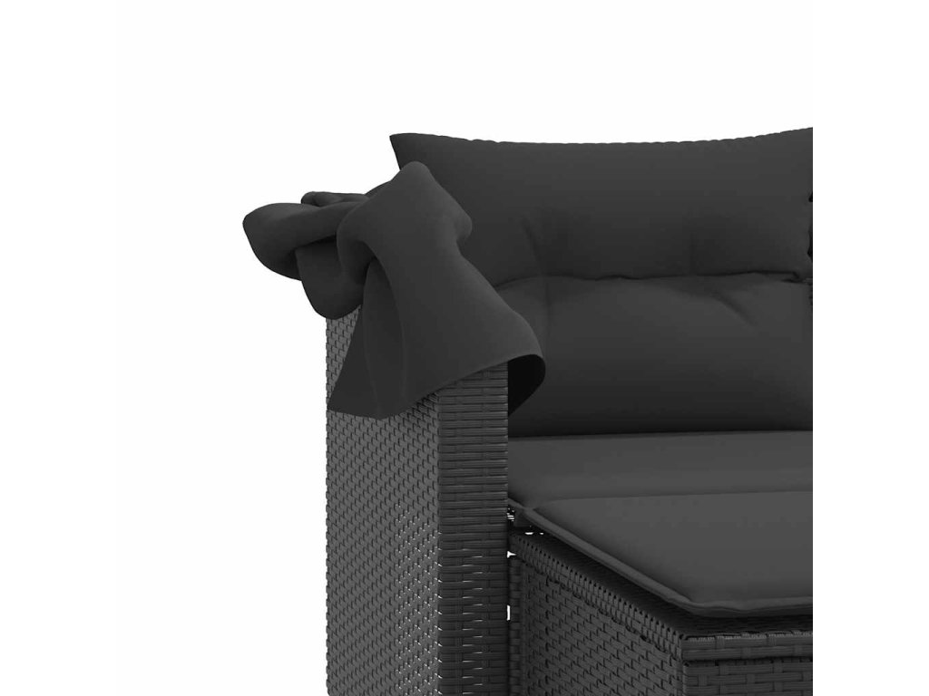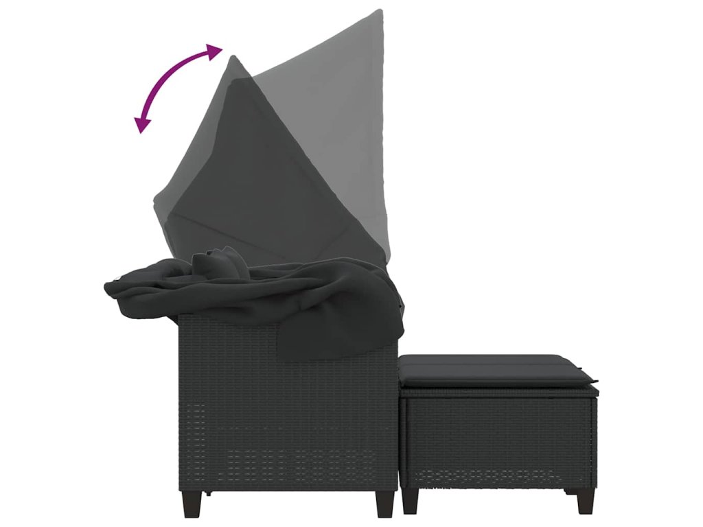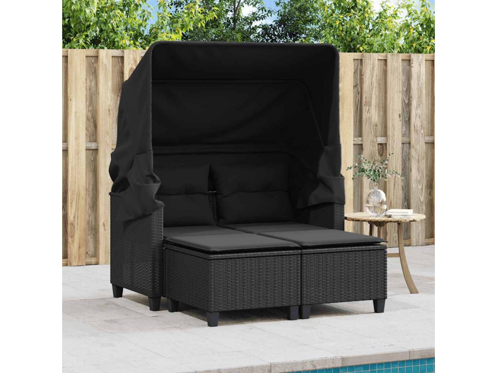 Zahradní pohovka 2místná se stříškou a taburety černá polyratan 365781