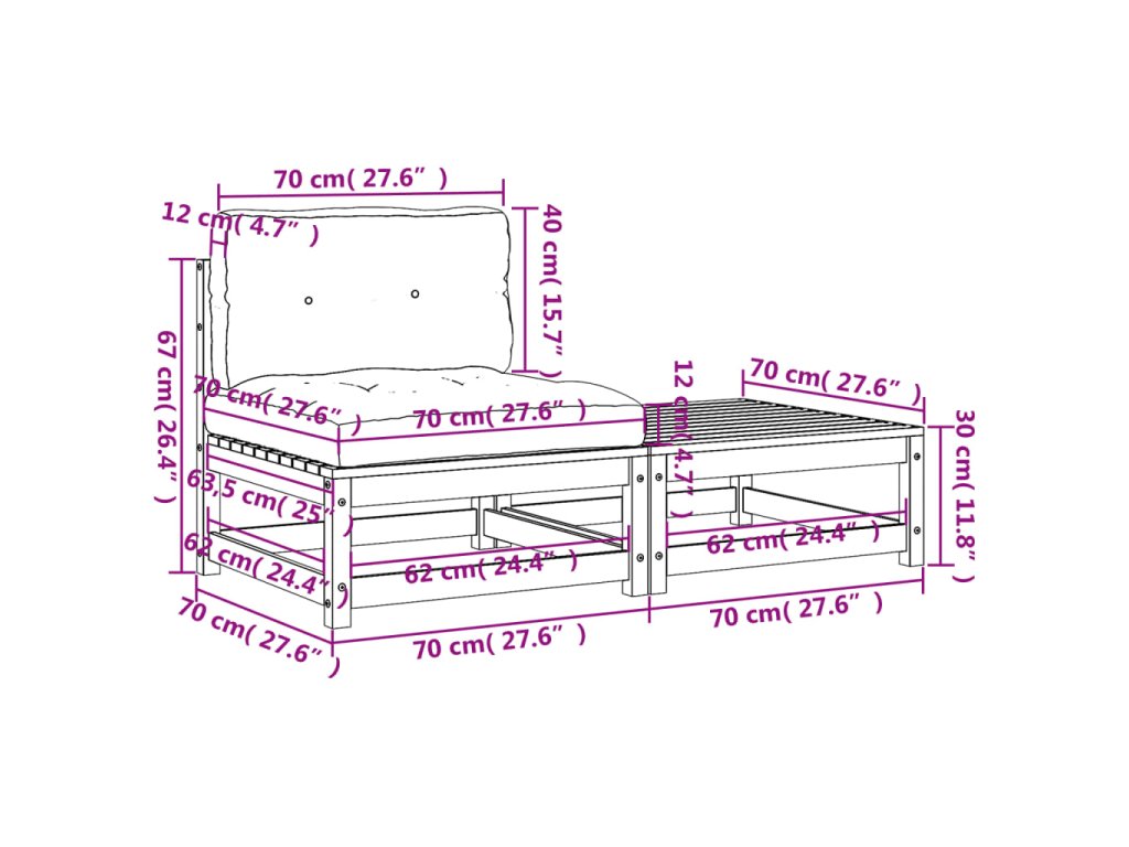 - Rozměry pohovky bez područek: 70 x 70 x 67 cm (Š x H x V)