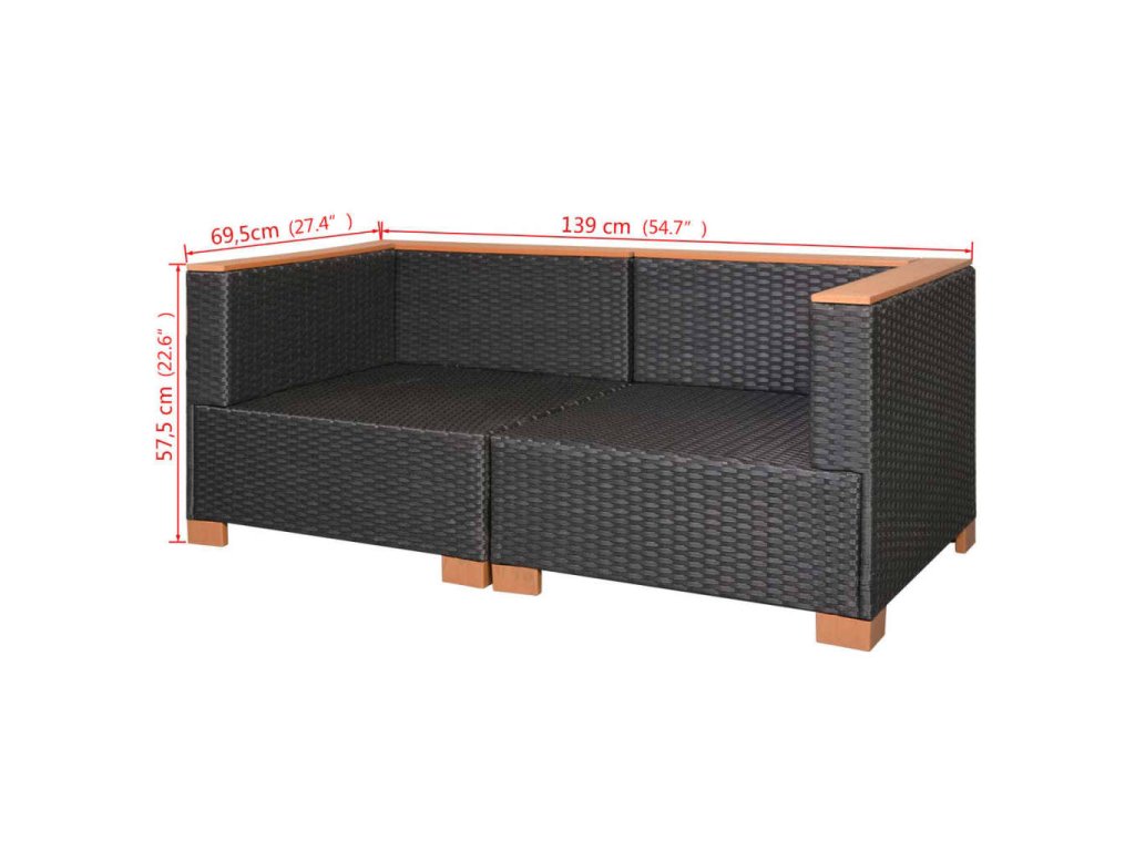 Zahradní pohovka polyratan černá 42754