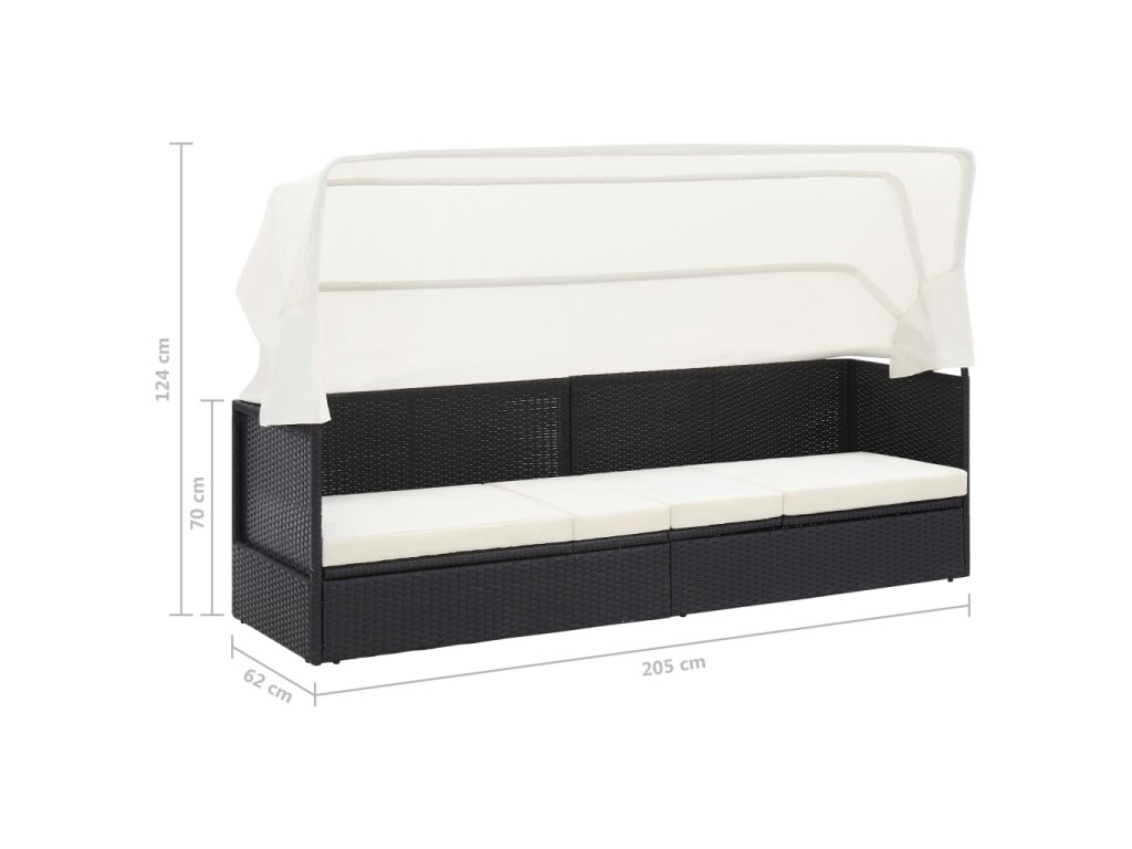 Zahradní pohovka s baldachýnem černá polyratan 49393