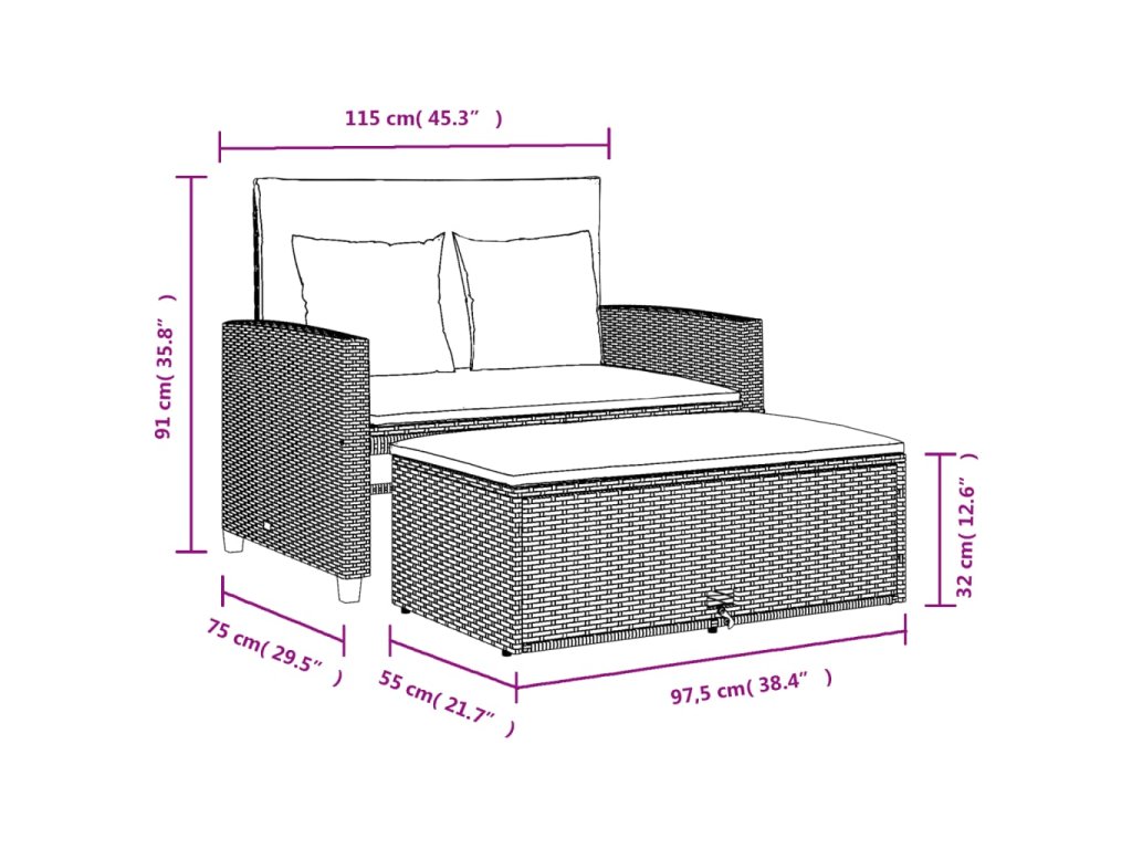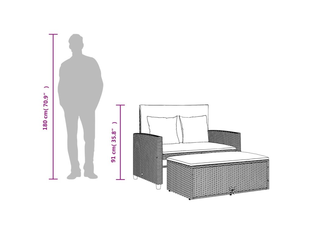 - Všestranná funkčnost: Tento venkovní nábytek lze použít jako dvoumístnou lavici nebo rozkládací pohovku. Sklopením opěradla a vytažením taburetu zpod lavice jej můžete snadno změnit na lůžko. Opěrné panely za opěradly dodávají posteli na stabilitě.