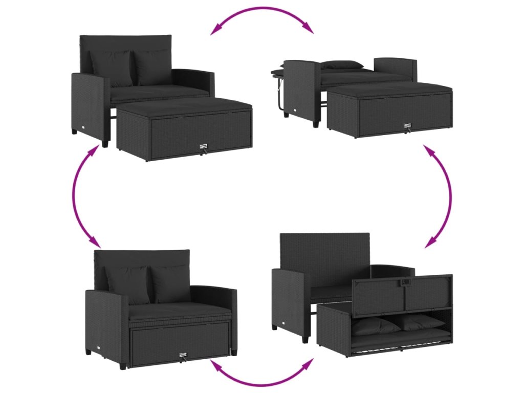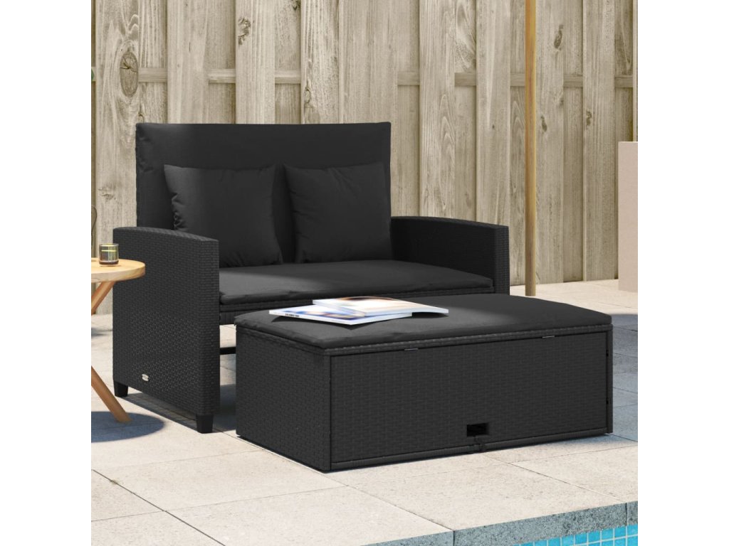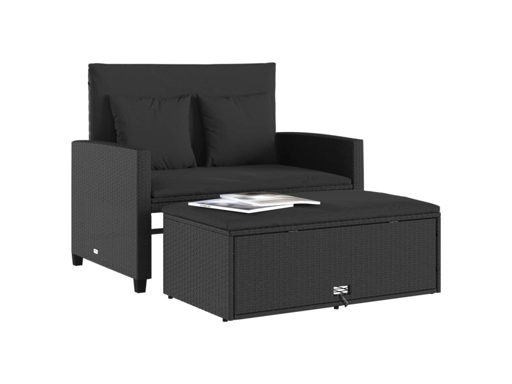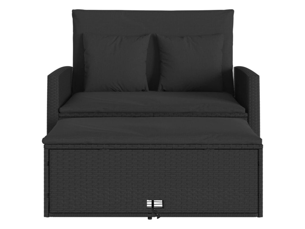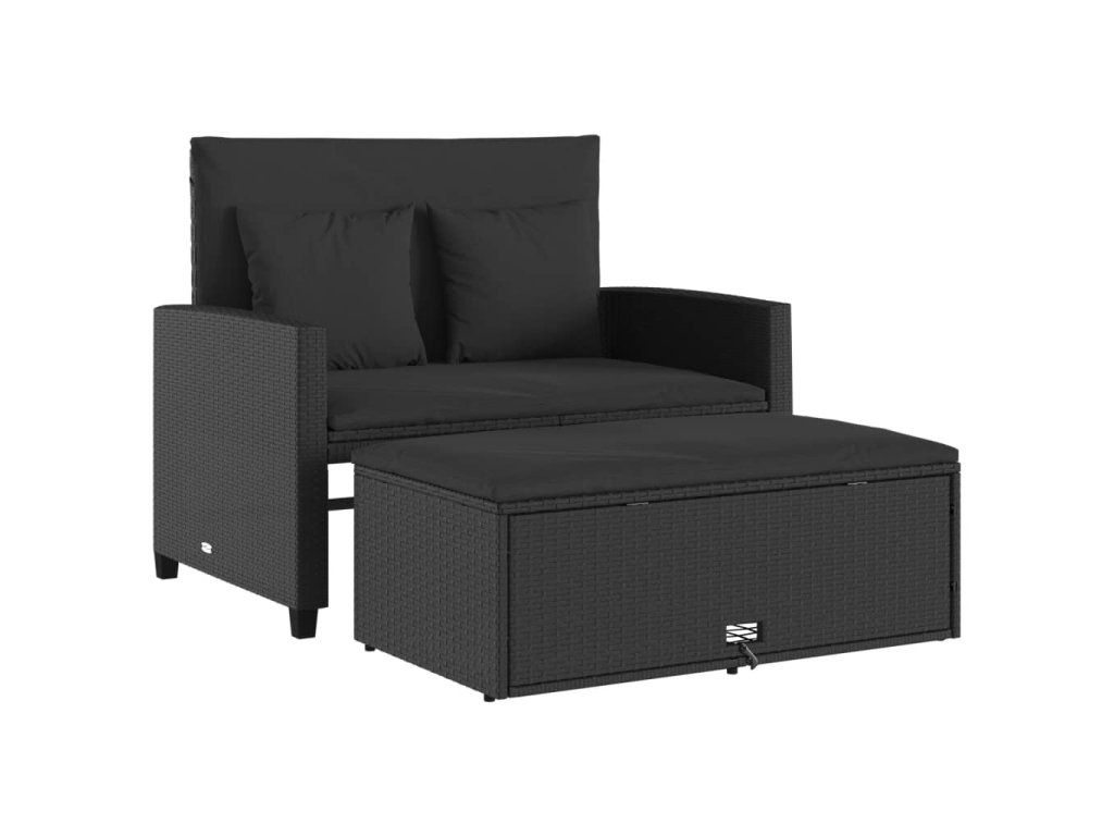 Zahradní pohovka s poduškami 2místná černá polyratan 365132