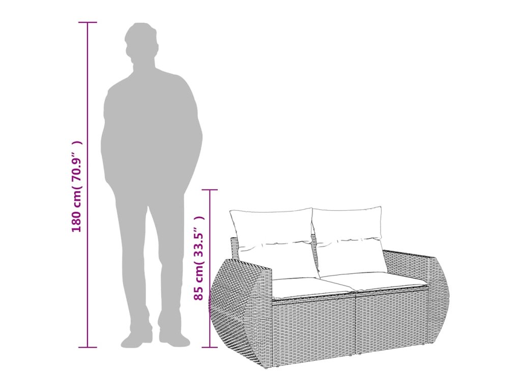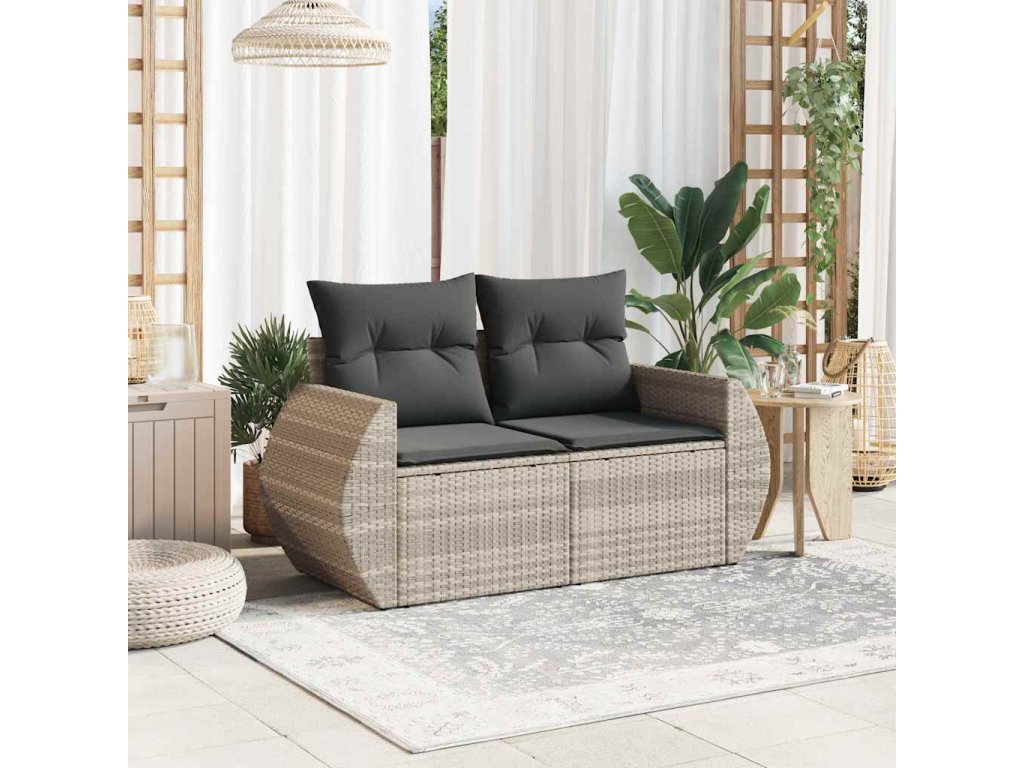 Zahradní pohovka s poduškami 2místná světle šedá polyratan 366186