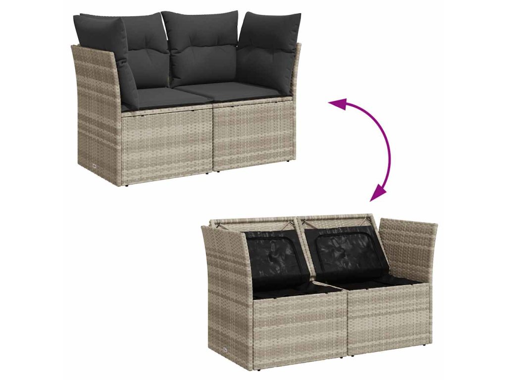 Zahradní pohovka s poduškami 2místná světle šedá polyratan 366192