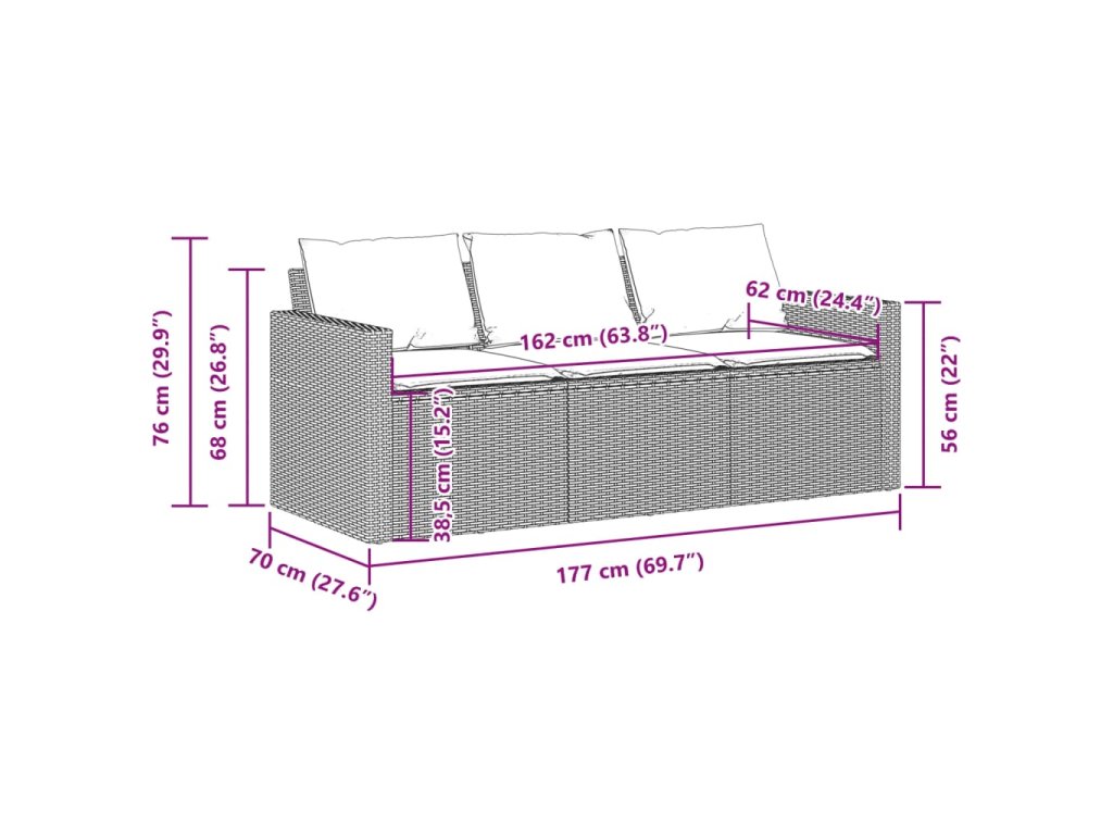 - Rozměry: 177 x 70 x 68 cm (Š x H x V)