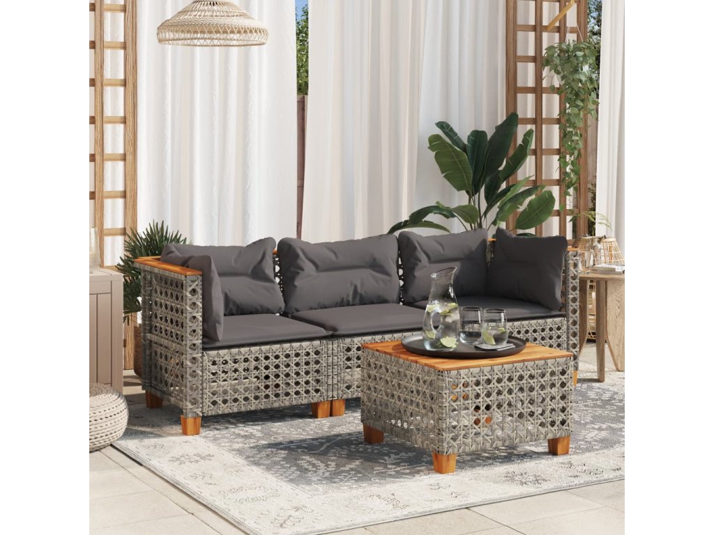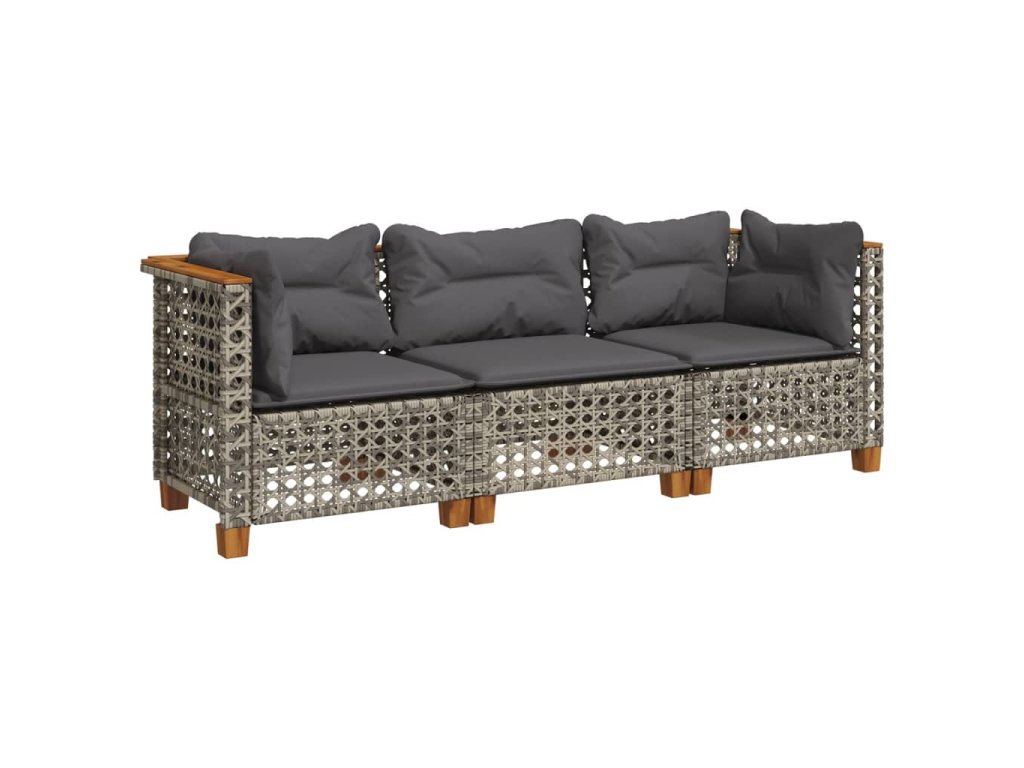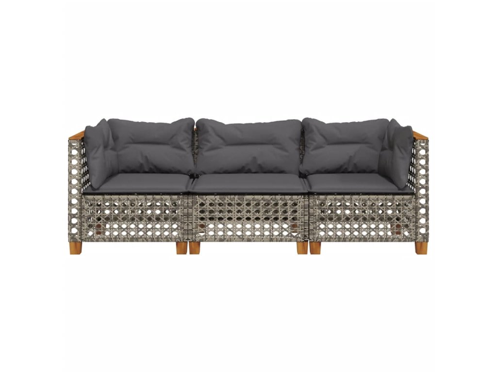 Zahradní pohovka s poduškami 3místná šedá polyratan 365939