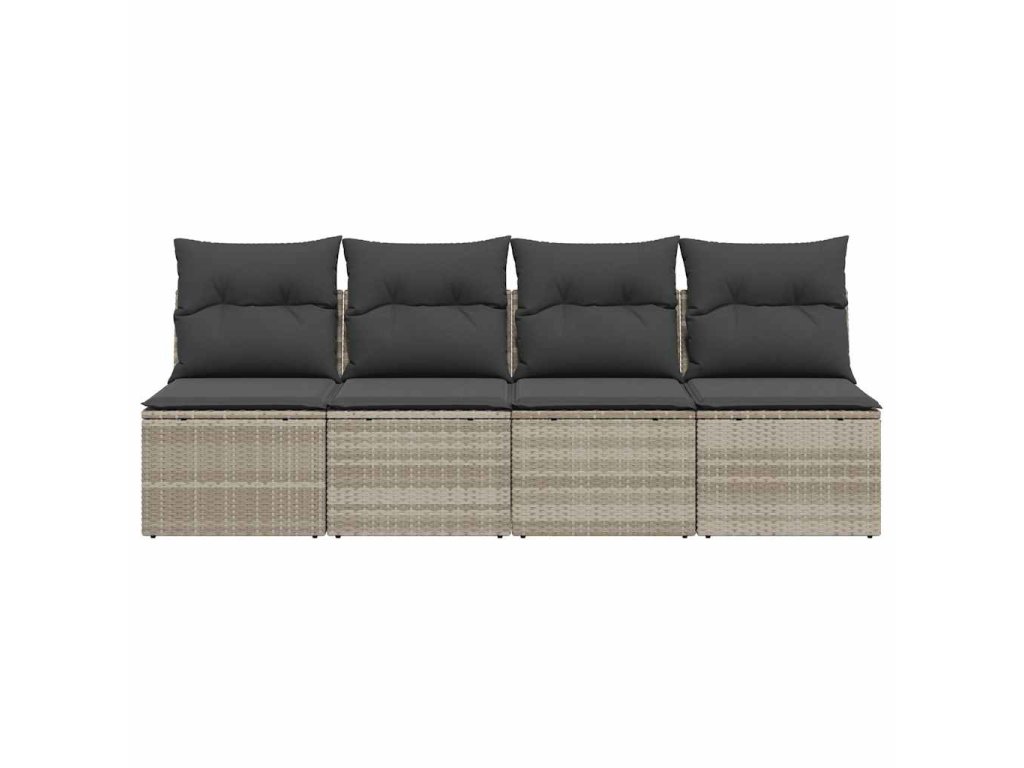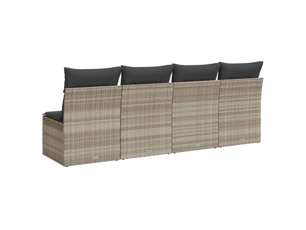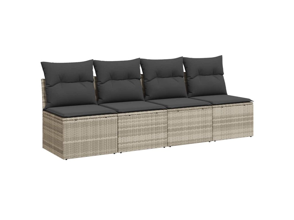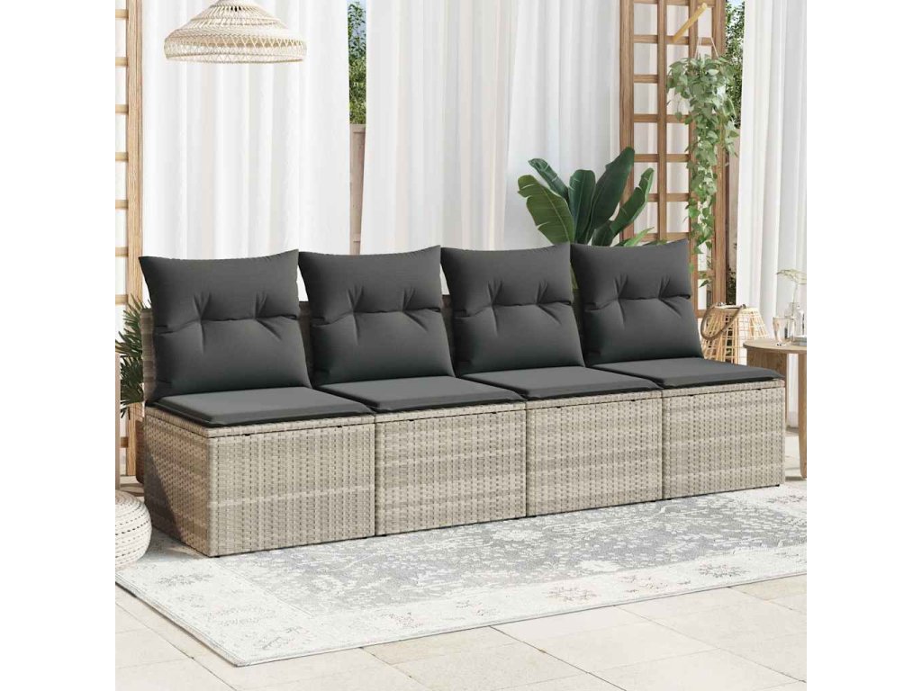 Zahradní pohovka s poduškami 4místná světle šedá polyratan 366178