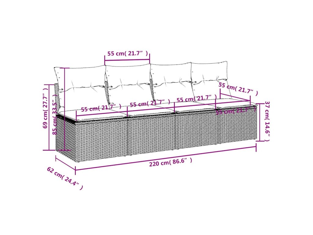 - Rozměry: 220 x 62 x 69 cm (Š x H x V)