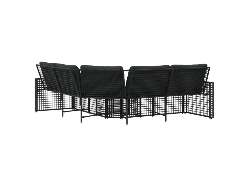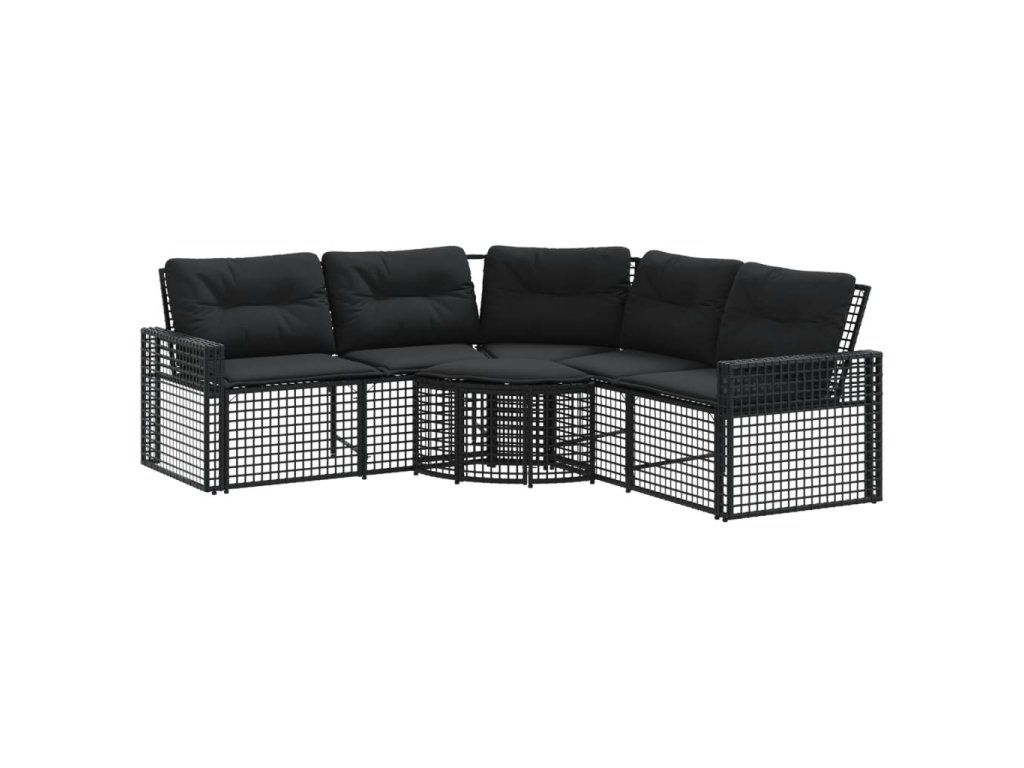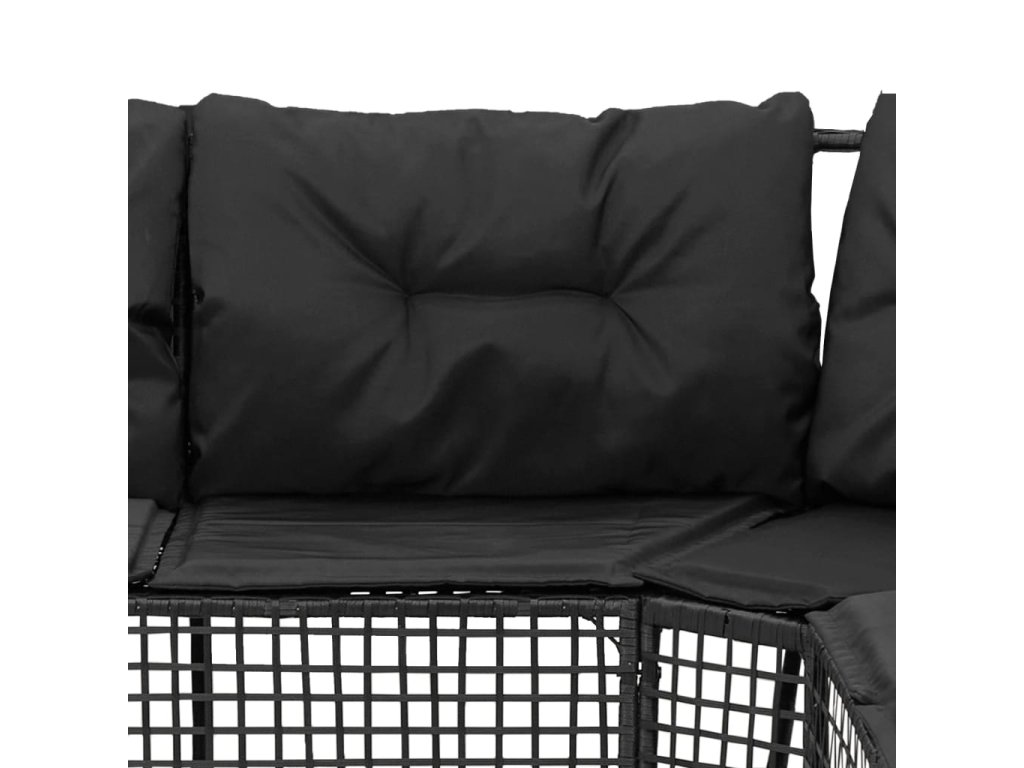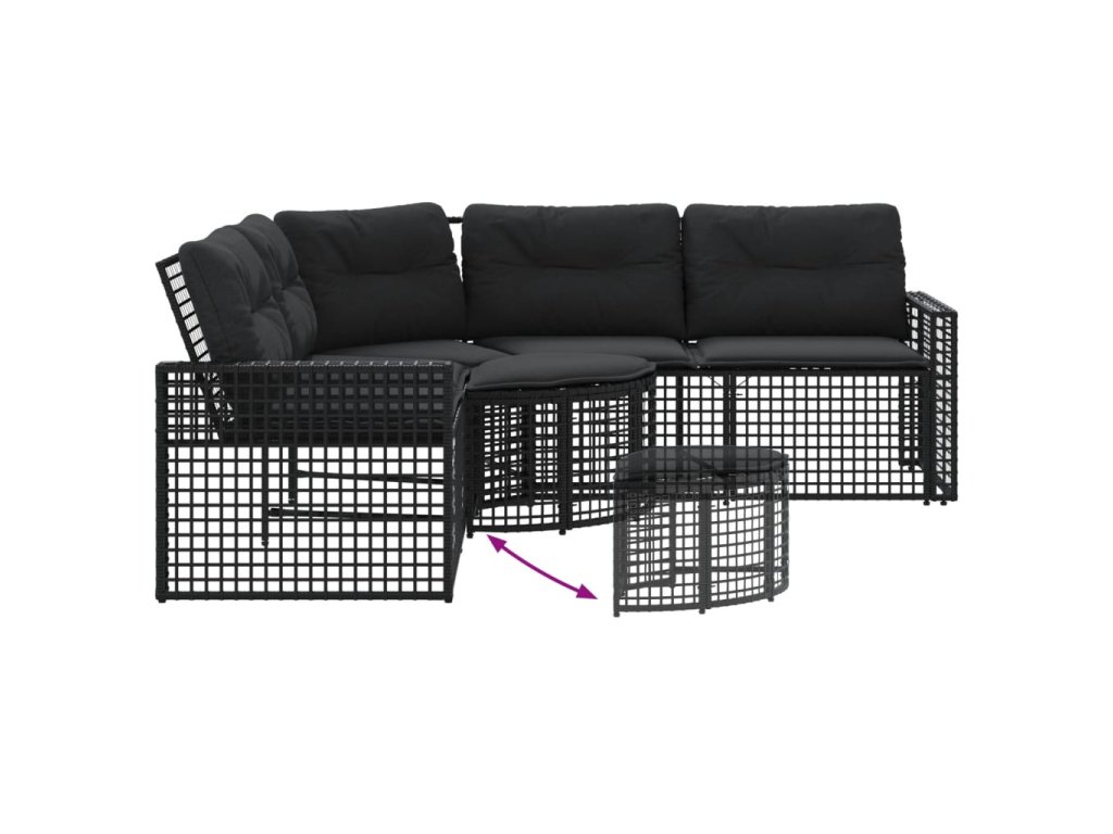 Zahradní pohovka s poduškami a podnožkou tvar L černá polyratan 365893
