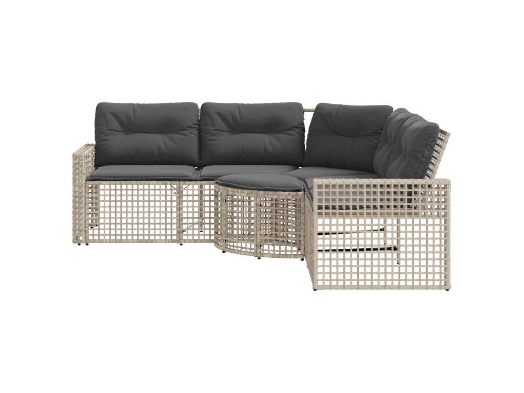 Zahradní pohovka s poduškami a podnožkou tvar L šedá polyratan 365898