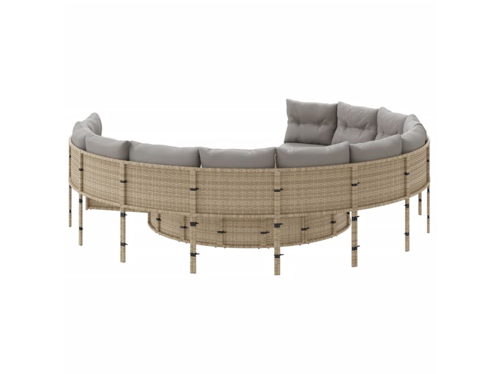Zahradní pohovka s poduškami kulatá béžová polyratan 3318542