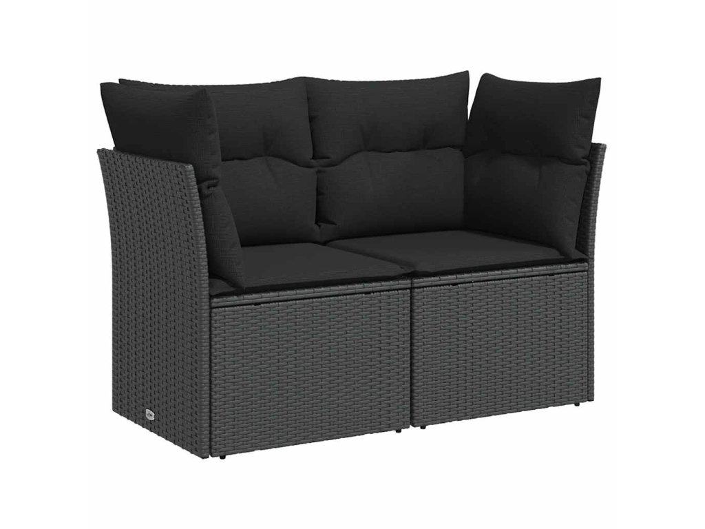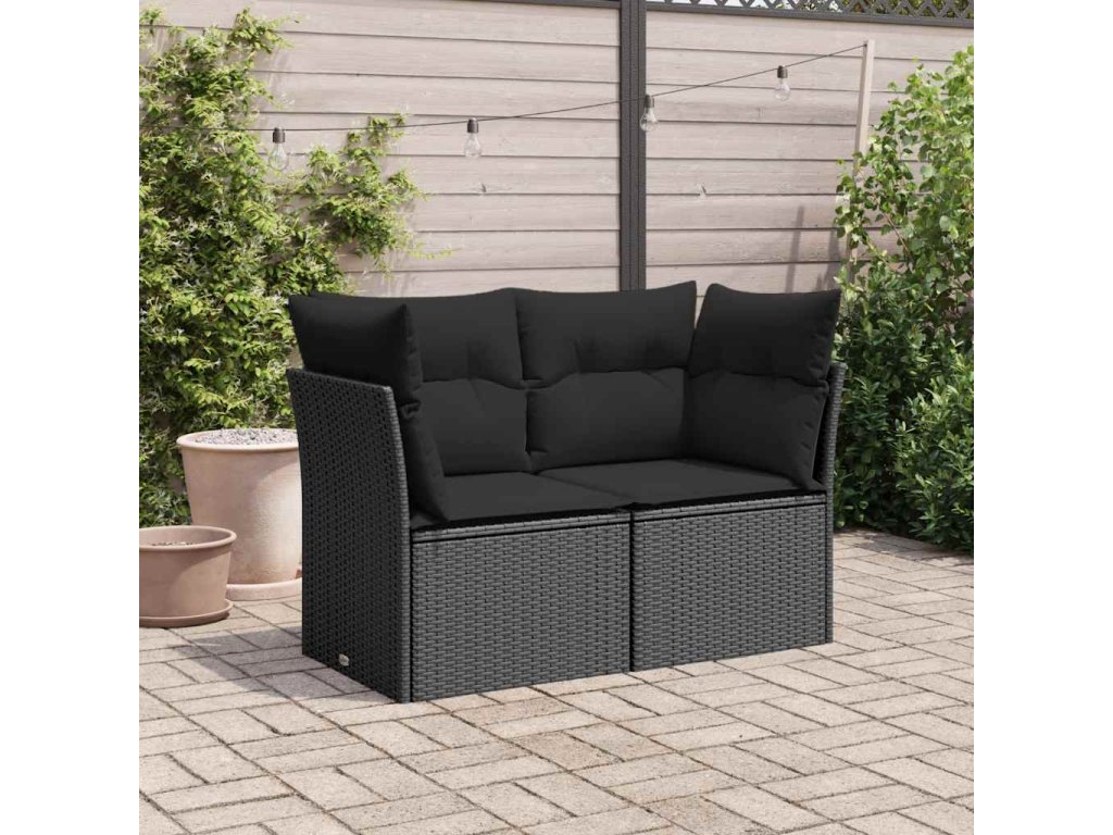 Zahradní pohovka s polštáři pro 2 osoby černá polyratan 365963