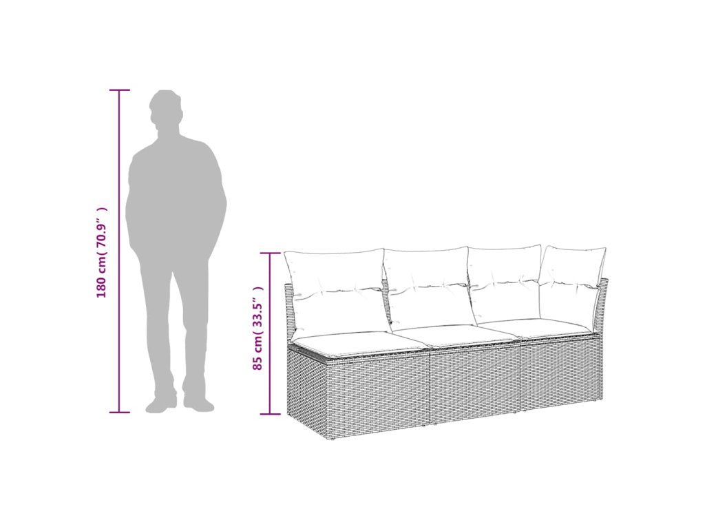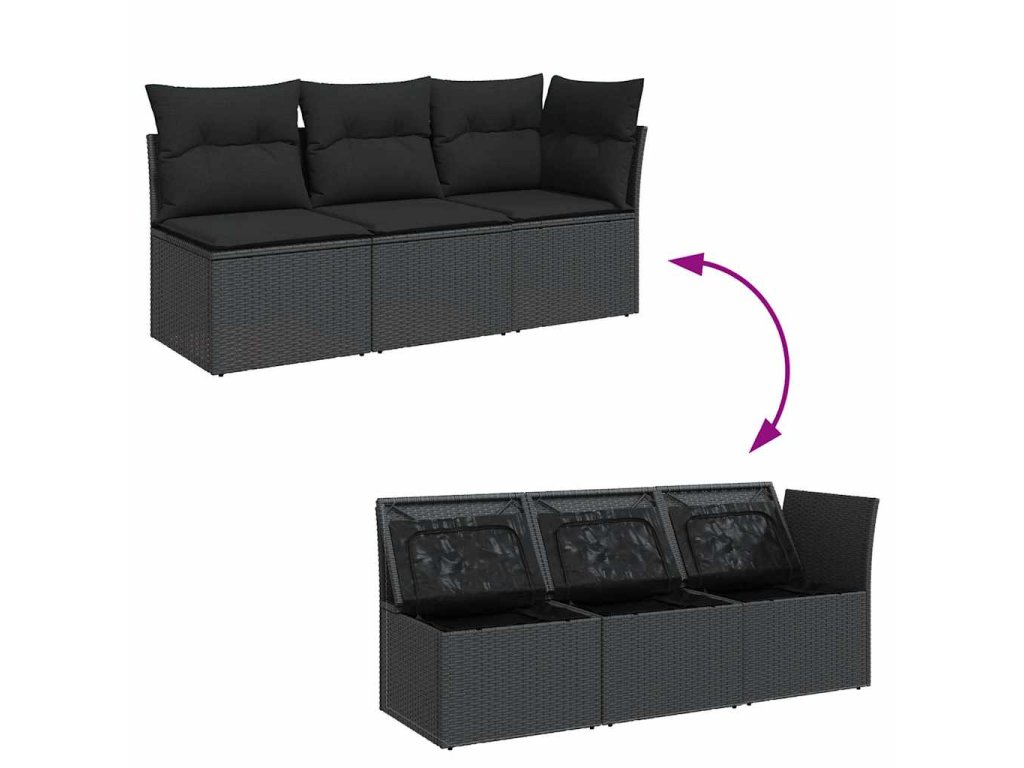 Zahradní pohovka s polštáři pro 3 osoby černá polyratan 365987