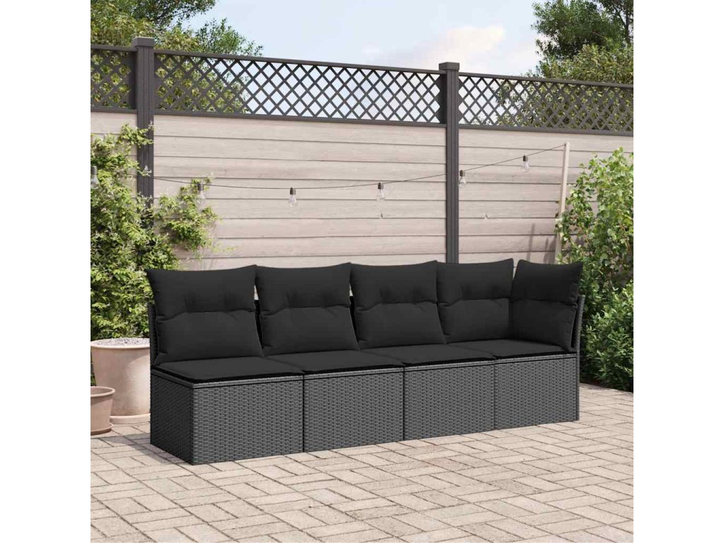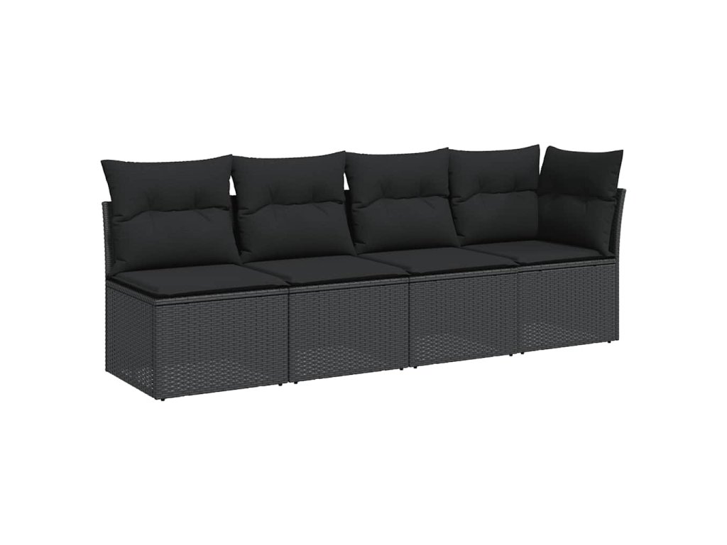 Zahradní pohovka s polštáři pro 4 osoby černá polyratan 365964