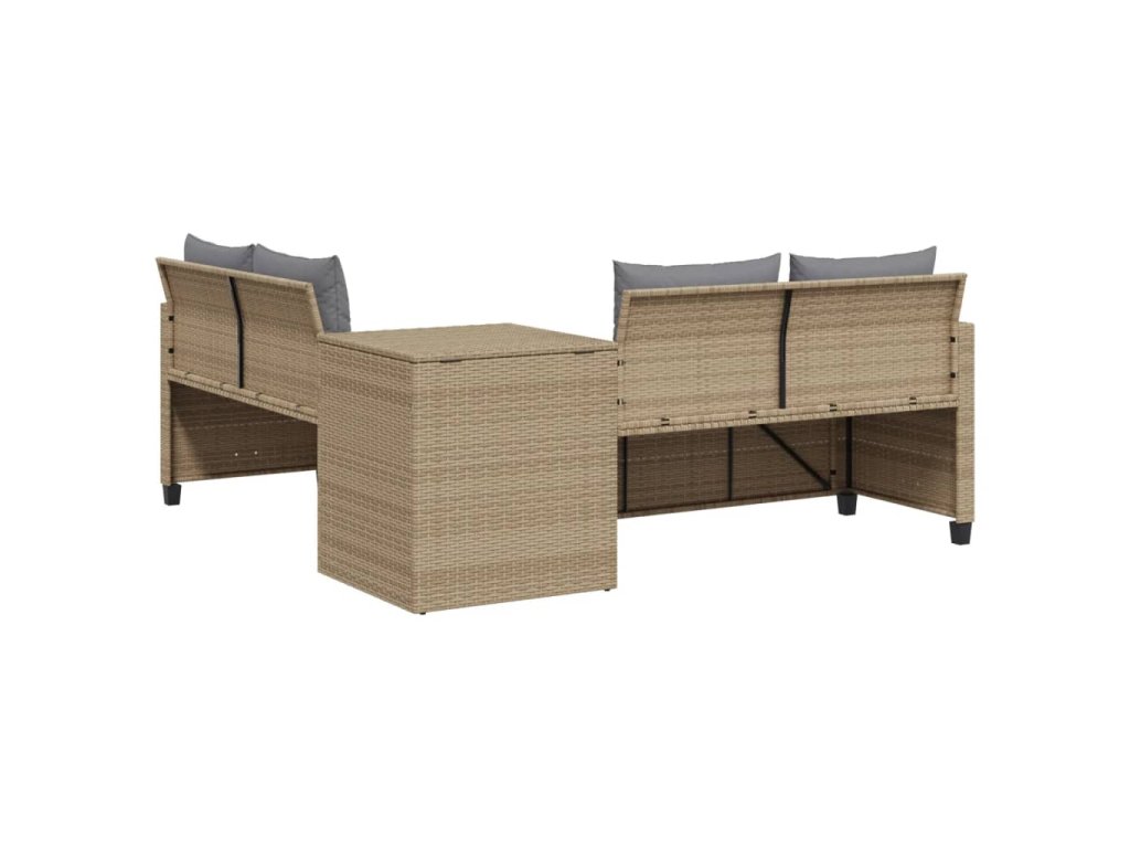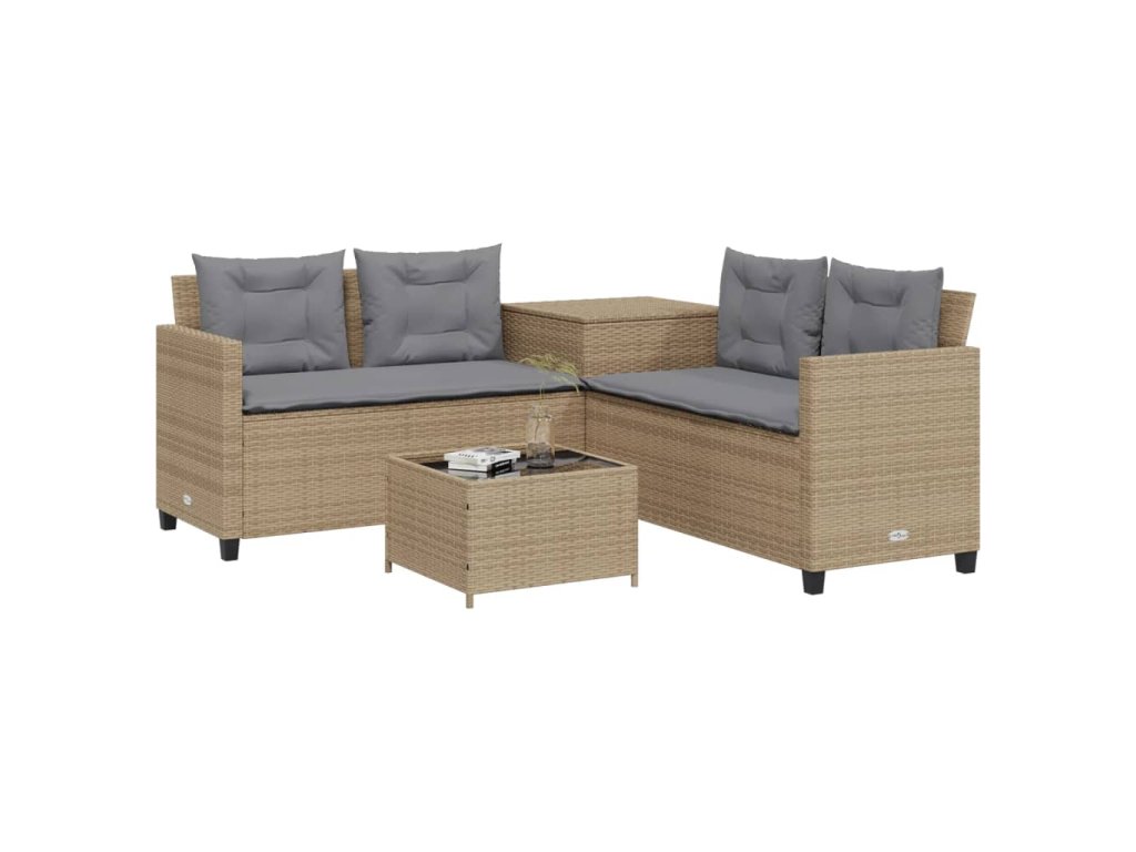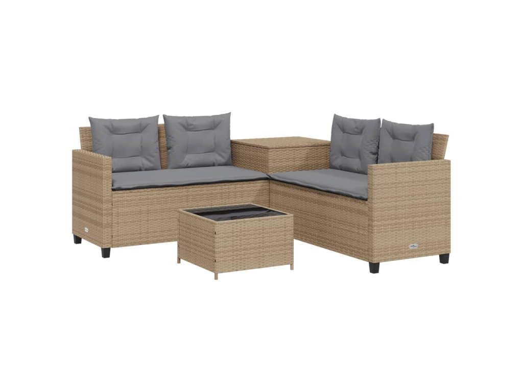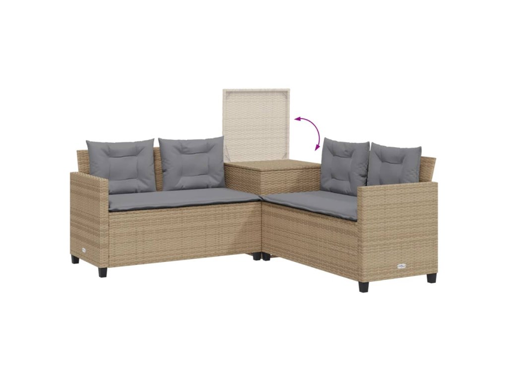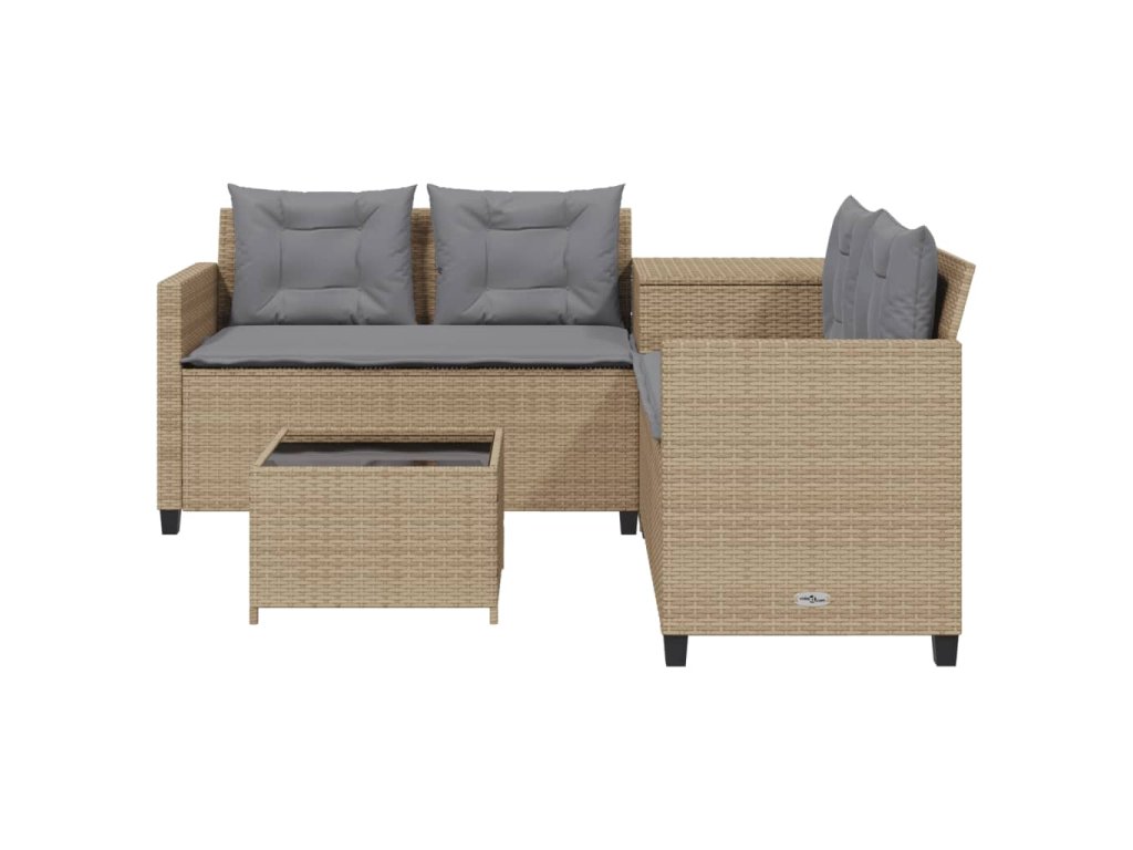 Zahradní pohovka ve tvaru L stolek a podušky béžová polyratan 369030