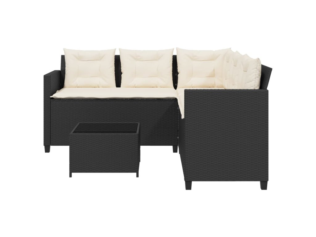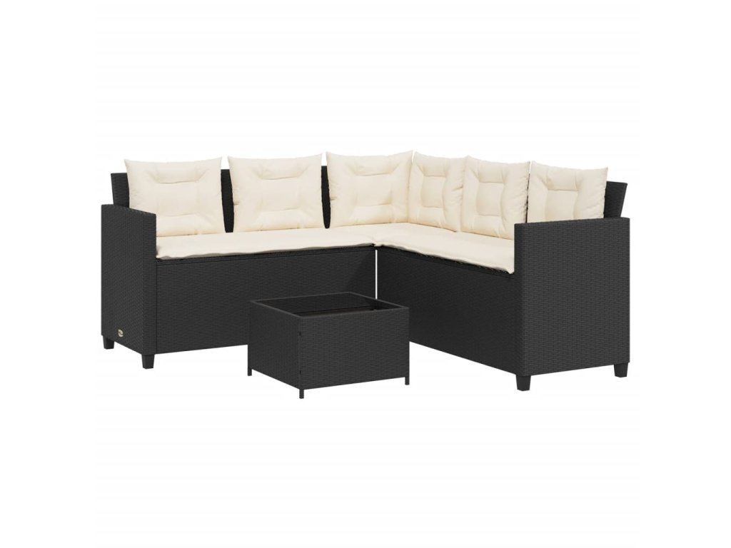Zahradní pohovka ve tvaru L stolek a podušky černá polyratan 369039